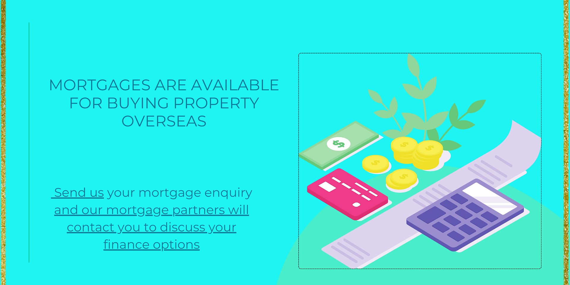 Mortgages are available for UK residents who want to purchase a property overseas, our mortgage partners can contact you to discuss your finance options