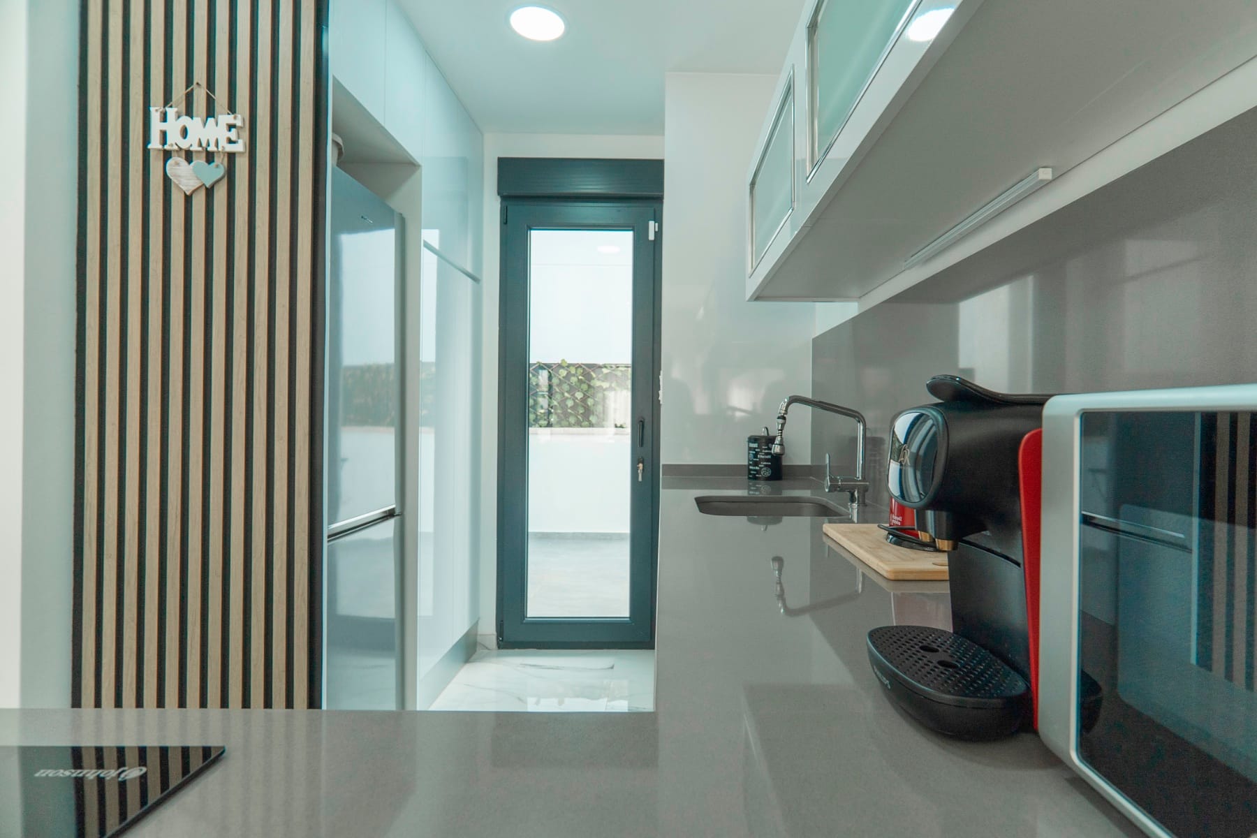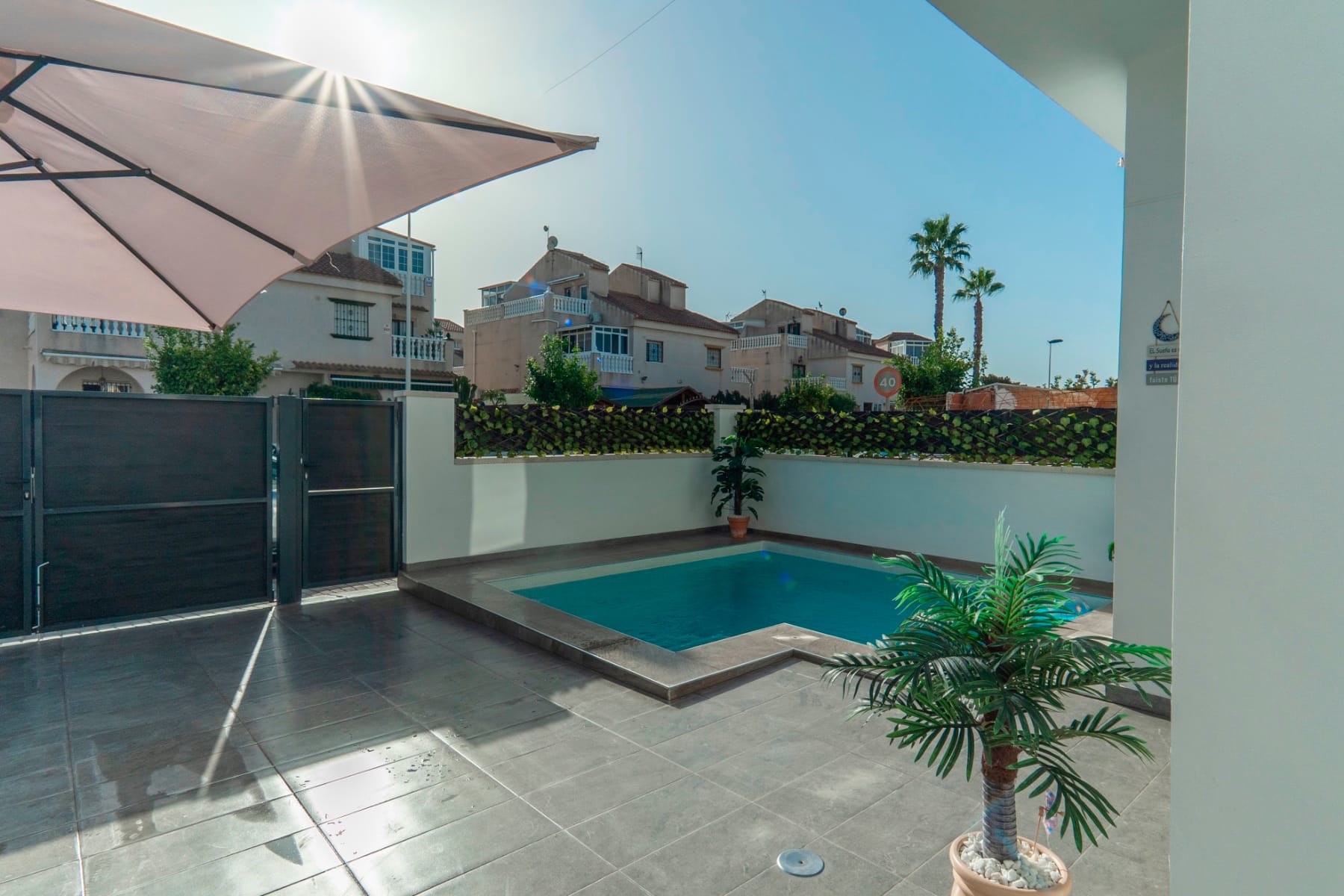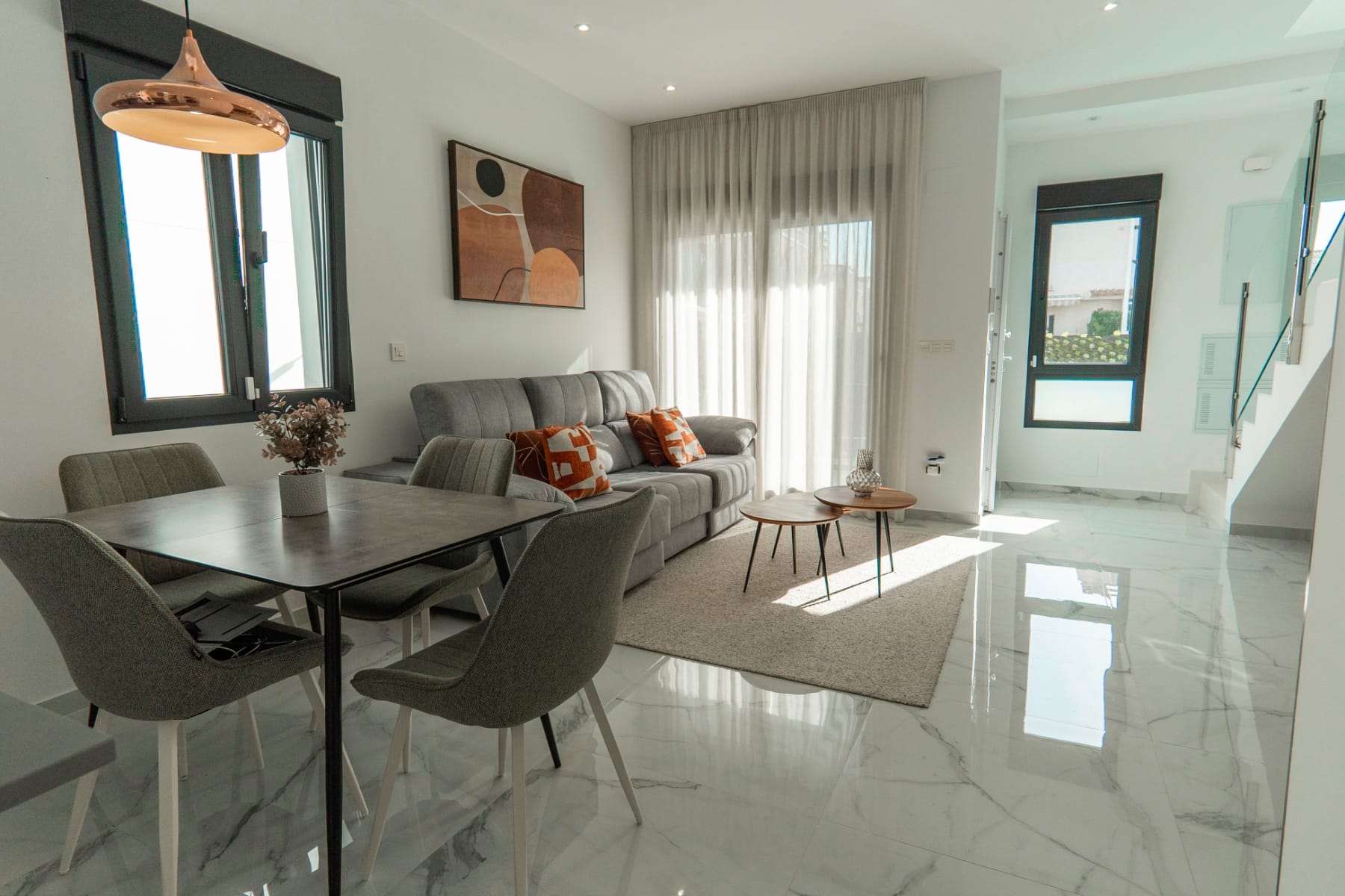 Immaculate detached villa in La Florida, Torrevieja. Designed for indoor-outdoor enjoyment, the bright open-plan living area flows through patio doors directly to the pool terrace, creating a seamless connection between the lounge and sun-soaked outdoor spaces. The modern kitchen complements the social layout and provides everything you need for relaxed daily living or entertaining.