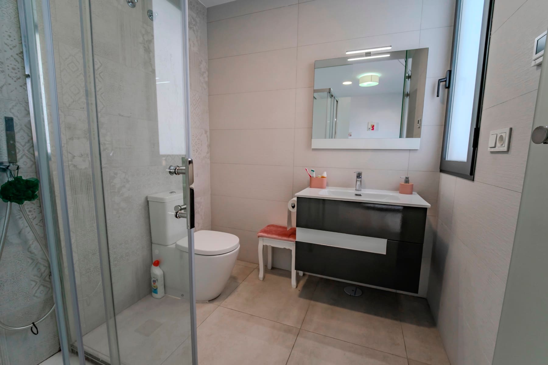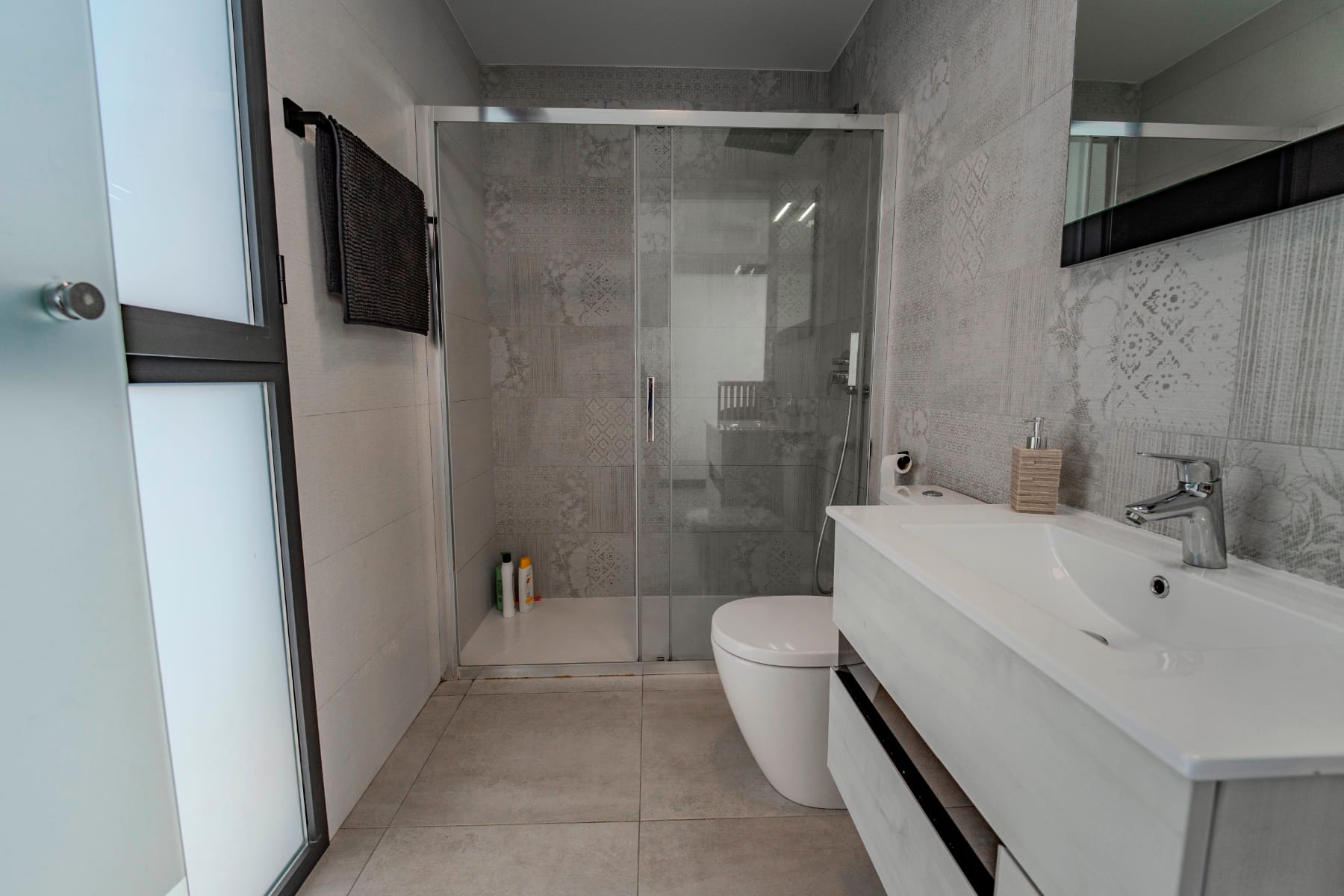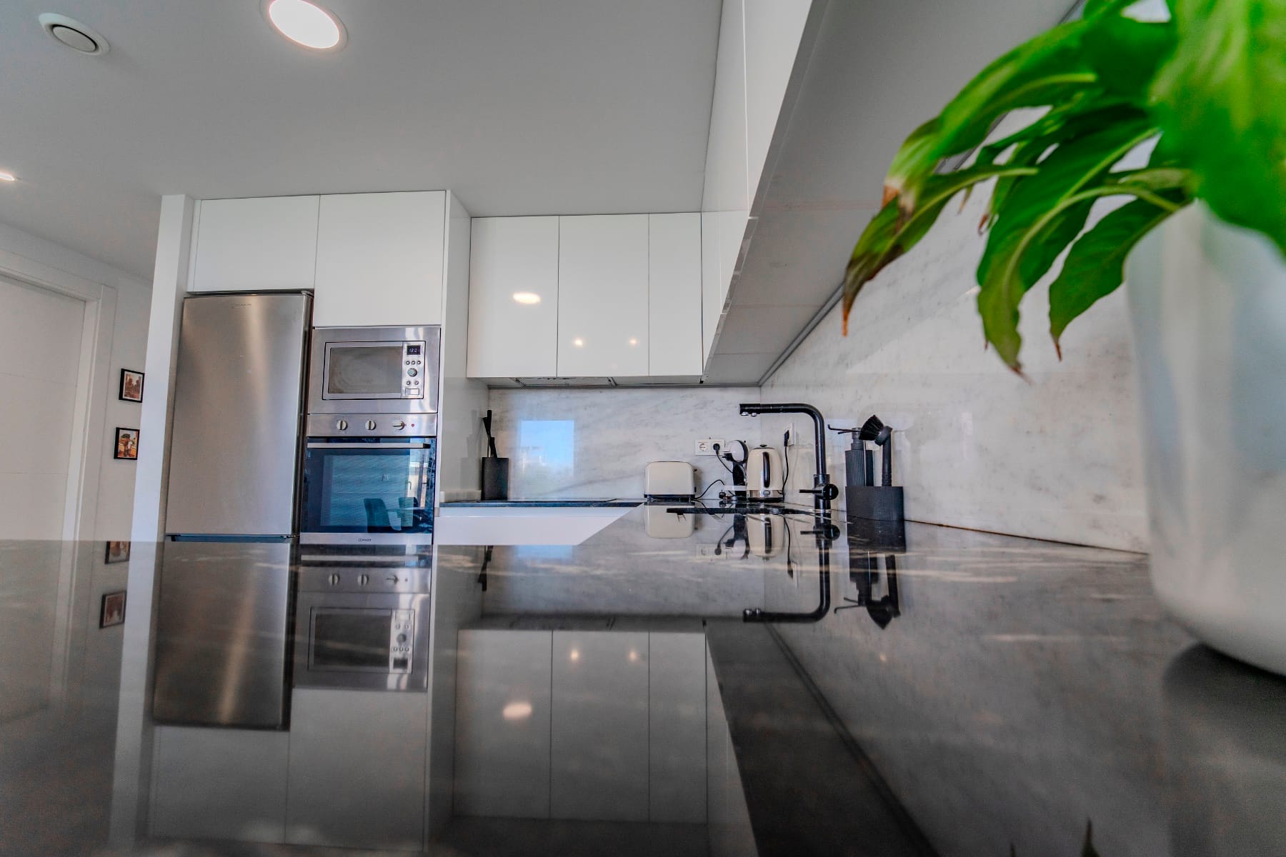 This modern villa for sale in Benijófar showcases exceptional build quality and contemporary style throughout. The open-plan layout connects the bright living and dining space with a sleek high-gloss kitchen, creating an elegant environment for both entertaining and everyday life.