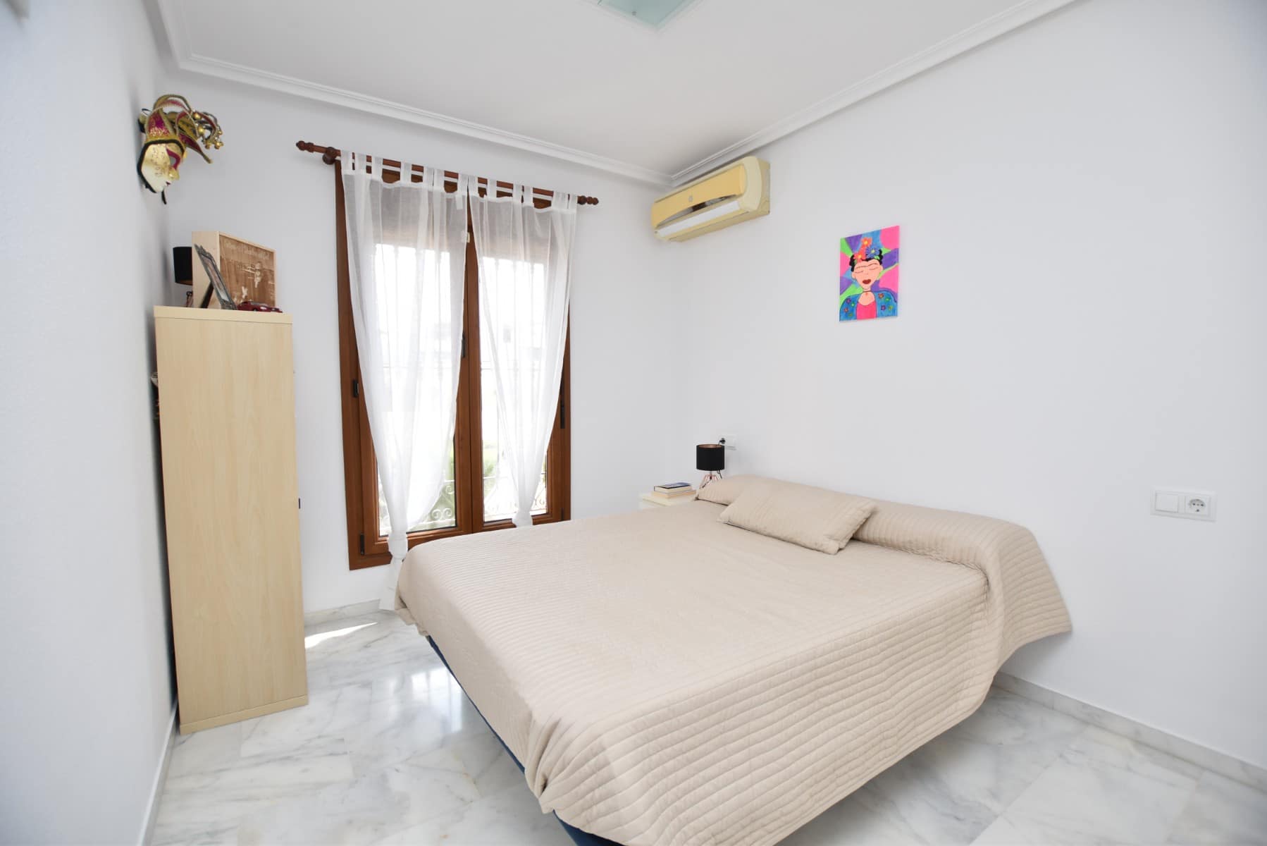 Welcome to this beautiful 3-bedroom townhouse located in a well-maintained gated community. Enjoy a refreshing swim in the community pool or park your car safely off the road in the private parking area. The modernized kitchen is perfect for preparing delicious meals, and the fully furnished home is ready for you to move in and enjoy. Relax in the garden or soak up the sun on the solarium. This well-cared-for home is within walking distance to all the necessary services and comes with the added benefit of air conditioning.  This charming home boasts 110 square meters of living space, 3 bedrooms, and 2 bathrooms. The property is in great condition and features built-in wardrobes, making organization a breeze. The garden is a perfect place to relax and unwind after a long day, enjoying the beautiful Spanish sun. Don’t miss out on this fantastic opportunity to own a piece of paradise in Spain. Contact us today to schedule a viewing.