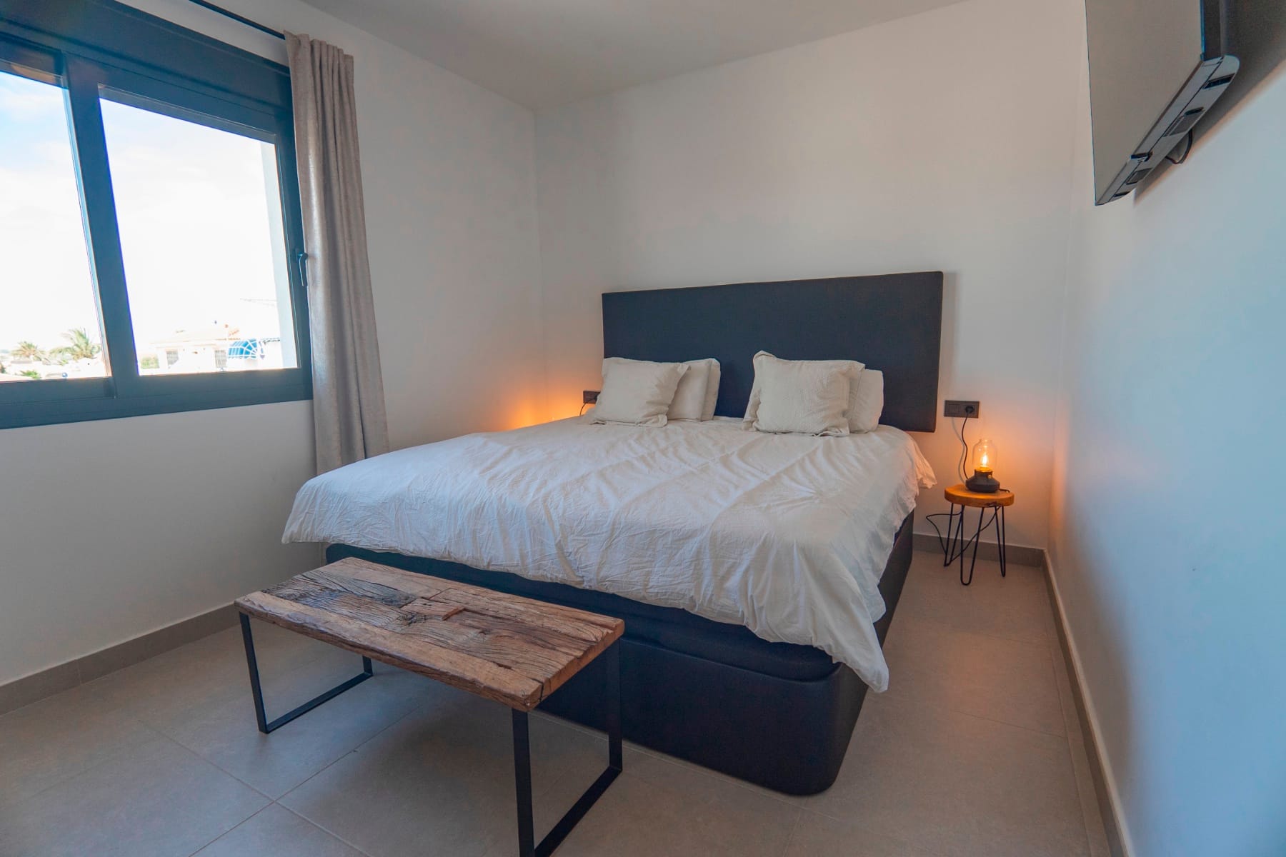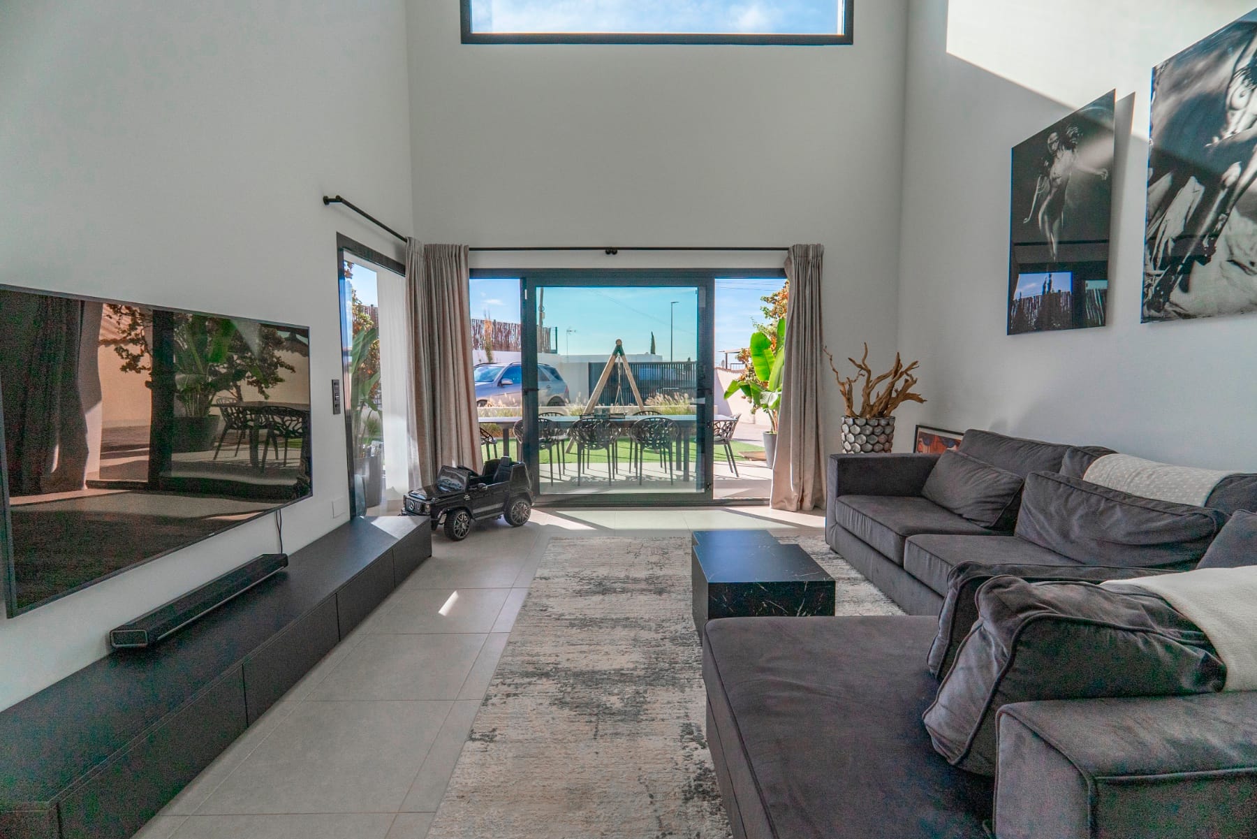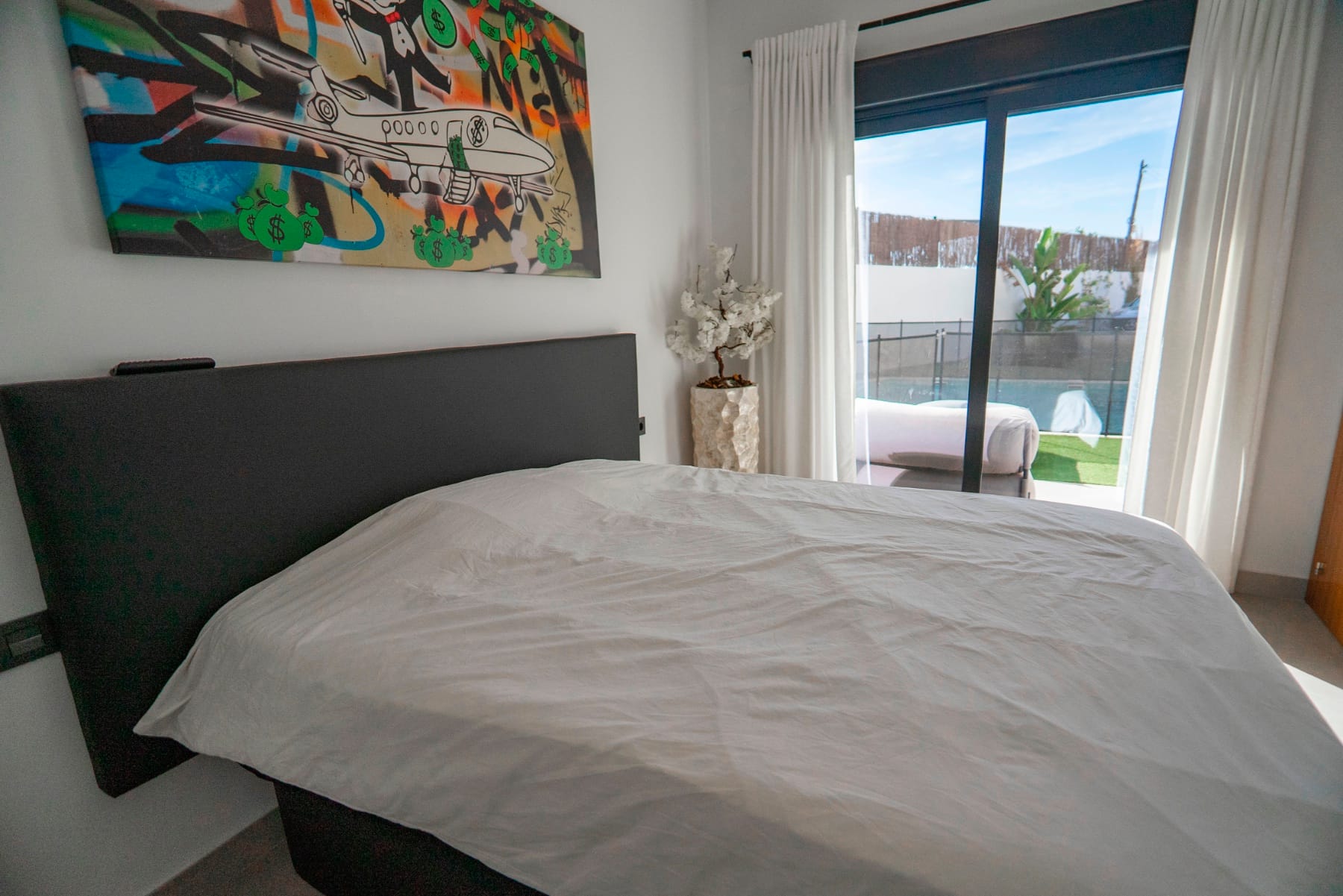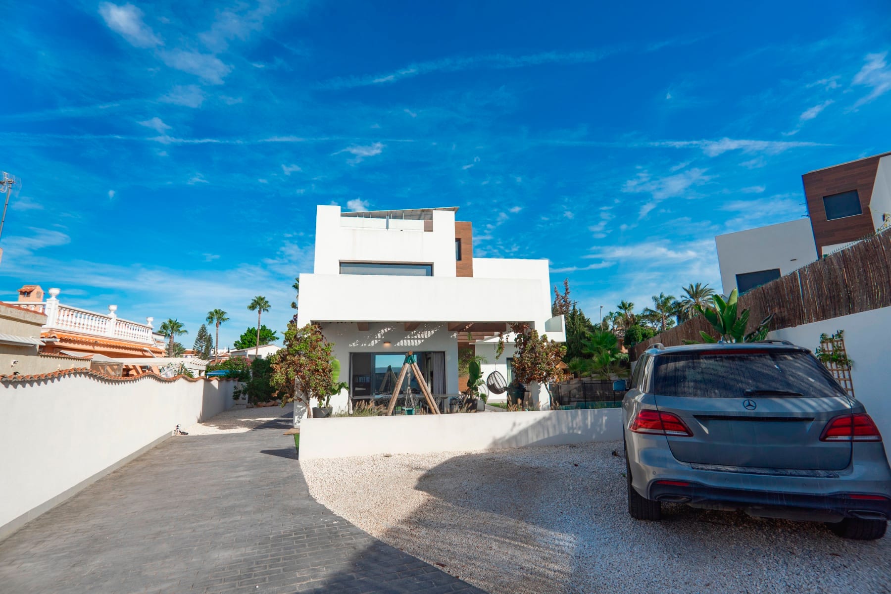 Petra Hönig Inmobiliaria in Ciudad Quesada is proud to present this elegant and contemporary detached villa, ideally situated in the heart of the highly sought-after Ciudad Quesada. Completed in 2020, this home features a bright and tasteful design with clean lines and quality finishes throughout. While more compact than some, its clever layout across two main floors plus a rooftop level ensures excellent functionality, light, and comfort in every space. Ground Floor: The entrance opens to a comfortable living area with an open-plan kitchen and an adjoining utility room. The large windows invite plenty of natural light, giving the interior a warm and airy feel. This floor also features a guest bedroomand a modern bathroom, making it ideal for visitors or convenient single-level living. First Floor: Upstairs, you’ll find two well-proportioned bedrooms, both with their own en-suite bathrooms. One bedroom includes a walk-in wardrobe, while the other provides access to a private balcony that overlooks the plot. Rooftop Level: At the top of the home is a versatile fourth room, currently used as an office, along with two generous terraces offering panoramic views over the surrounding area, the salt lakes, and even glimpses of the Mediterranean Sea. Exterior & Plot: The plot is well-sized yet manageable, featuring a private pool area, several charming patios and terraces perfect for relaxation or entertaining, and off-road parking for multiple vehicles. Prime Location: Nestled in Ciudad Quesada, a vibrant year-round community, this home is within easy reach of shops, restaurants, bars, and essential services. For recreation, the area offers golf, mini golf, a water park, bowling, hiking trails, and much more. There is also a Norwegian school, making it especially appealing for international families. The beaches of Guardamar and Torrevieja are just a 10-minute drive away, and La Marquesa Golf Course is within walking distance.