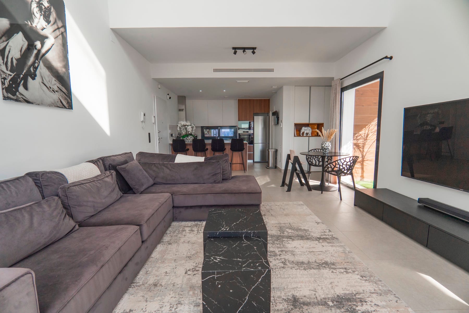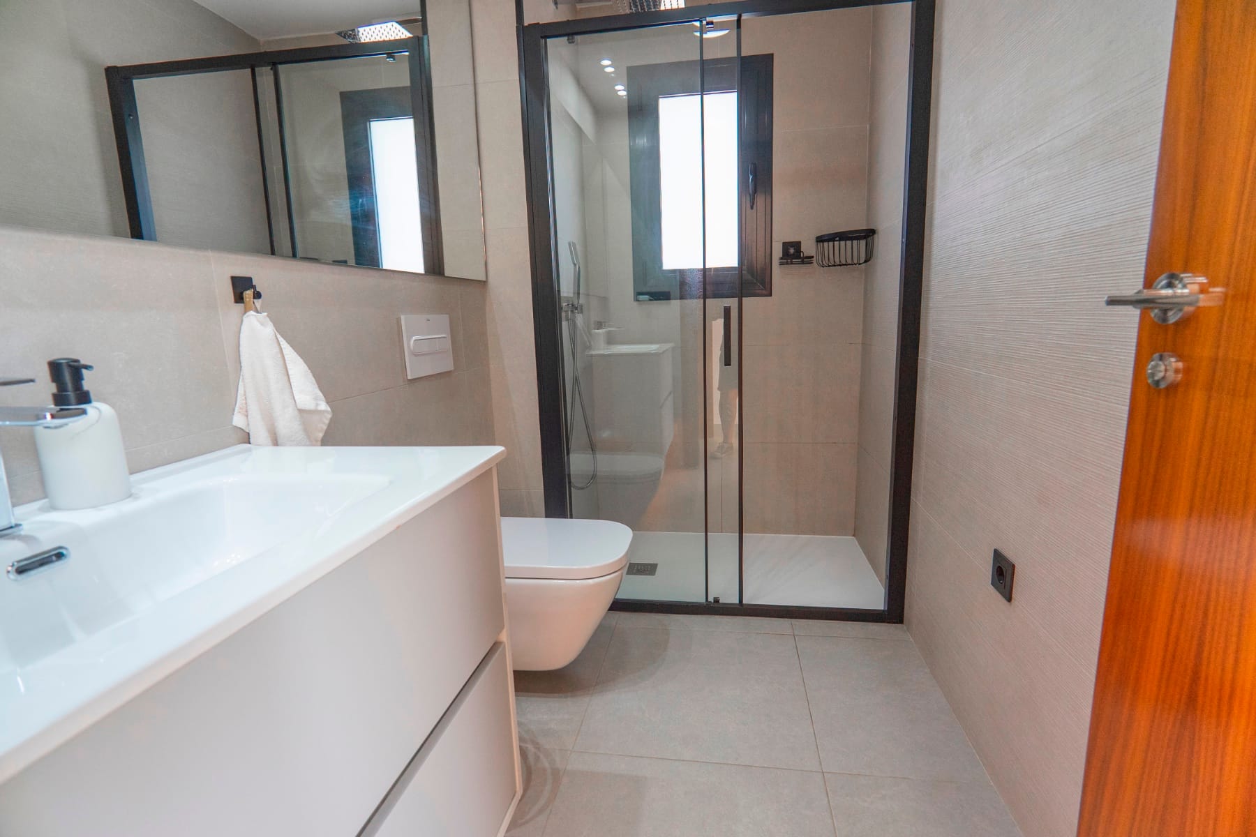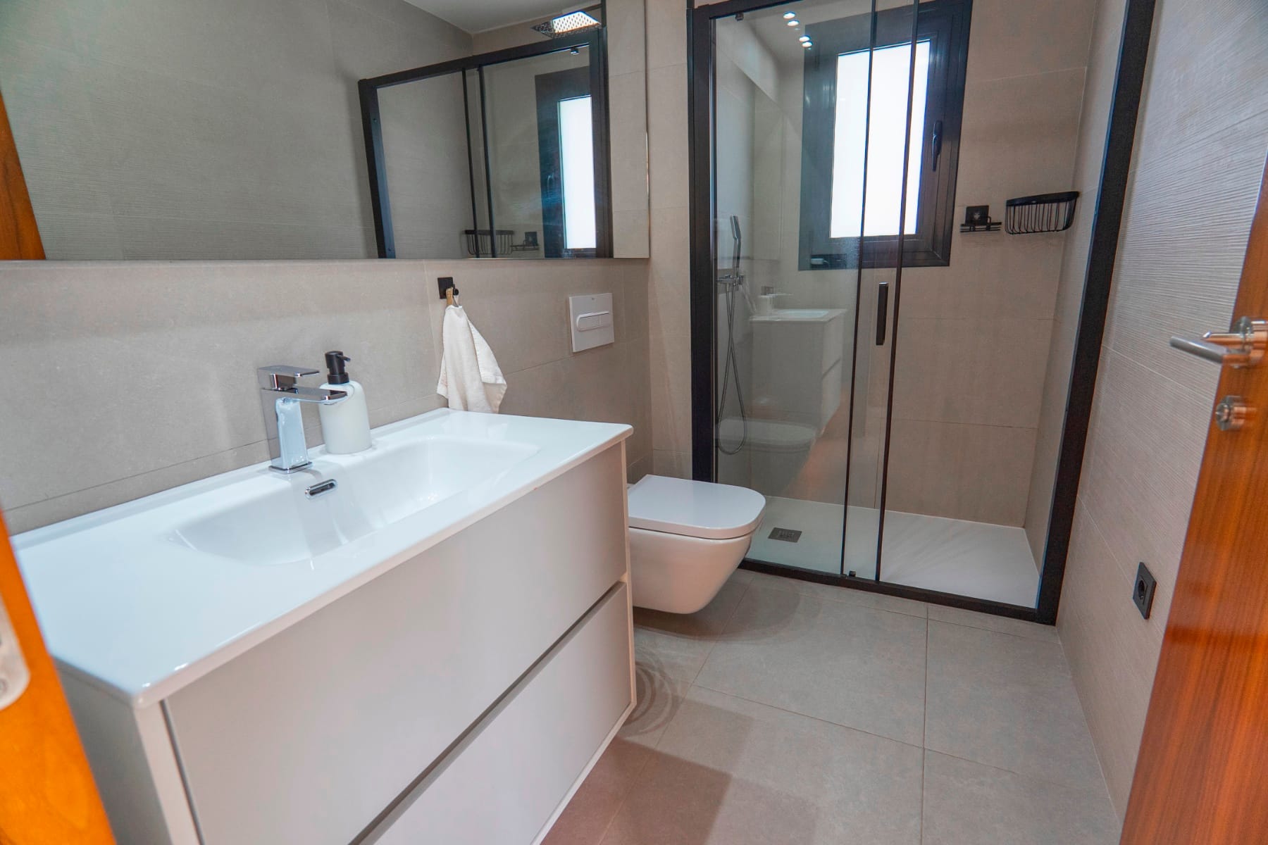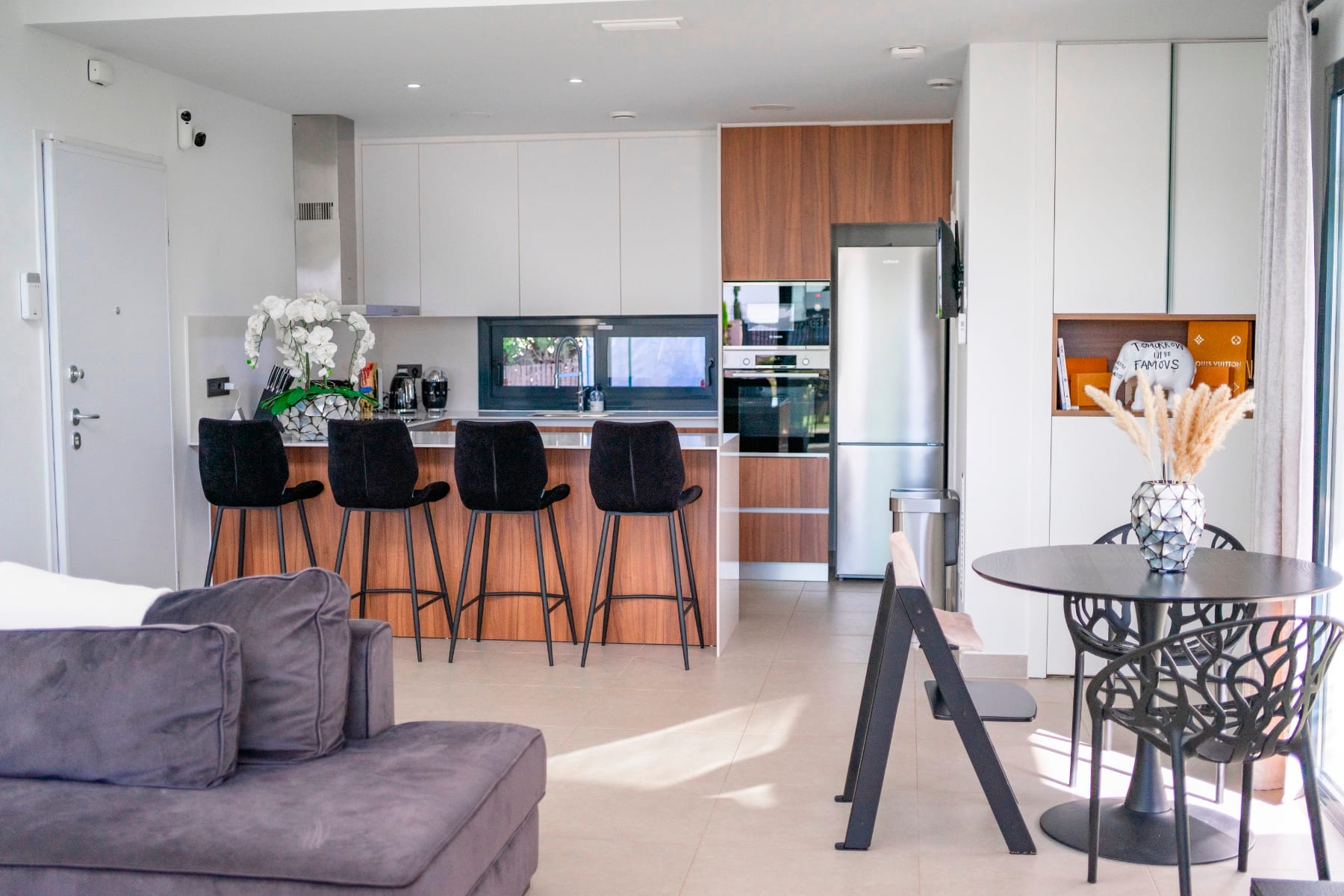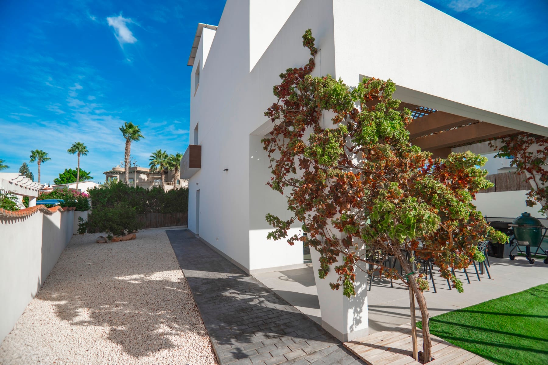 Petra Hönig Inmobiliaria in Ciudad Quesada is proud to present this elegant and contemporary detached villa, ideally situated in the heart of the highly sought-after Ciudad Quesada. Completed in 2020, this home features a bright and tasteful design with clean lines and quality finishes throughout. While more compact than some, its clever layout across two main floors plus a rooftop level ensures excellent functionality, light, and comfort in every space. Ground Floor: The entrance opens to a comfortable living area with an open-plan kitchen and an adjoining utility room. The large windows invite plenty of natural light, giving the interior a warm and airy feel. This floor also features a guest bedroomand a modern bathroom, making it ideal for visitors or convenient single-level living. First Floor: Upstairs, you’ll find two well-proportioned bedrooms, both with their own en-suite bathrooms. One bedroom includes a walk-in wardrobe, while the other provides access to a private balcony that overlooks the plot. Rooftop Level: At the top of the home is a versatile fourth room, currently used as an office, along with two generous terraces offering panoramic views over the surrounding area, the salt lakes, and even glimpses of the Mediterranean Sea. Exterior & Plot: The plot is well-sized yet manageable, featuring a private pool area, several charming patios and terraces perfect for relaxation or entertaining, and off-road parking for multiple vehicles. Prime Location: Nestled in Ciudad Quesada, a vibrant year-round community, this home is within easy reach of shops, restaurants, bars, and essential services. For recreation, the area offers golf, mini golf, a water park, bowling, hiking trails, and much more. There is also a Norwegian school, making it especially appealing for international families. The beaches of Guardamar and Torrevieja are just a 10-minute drive away, and La Marquesa Golf Course is within walking distance.