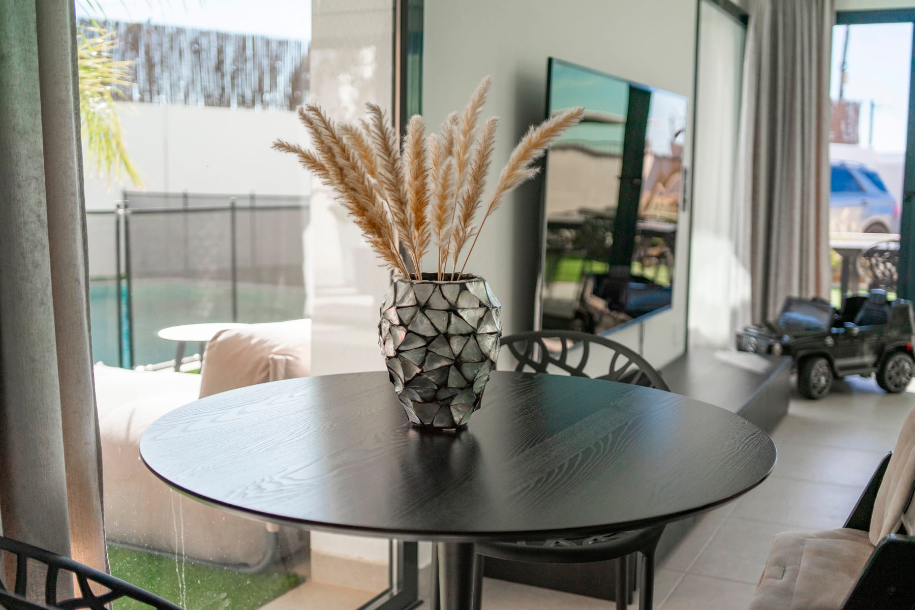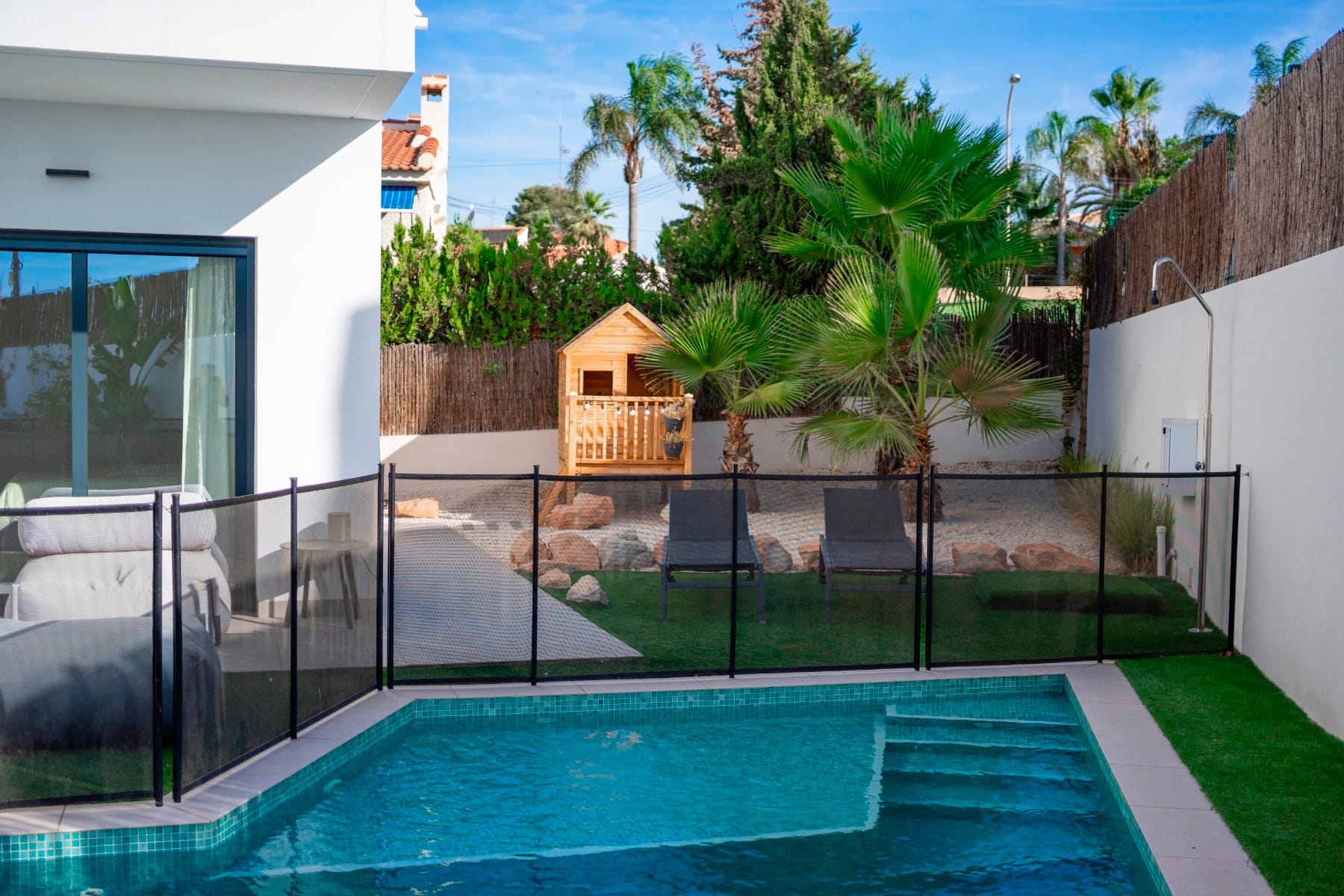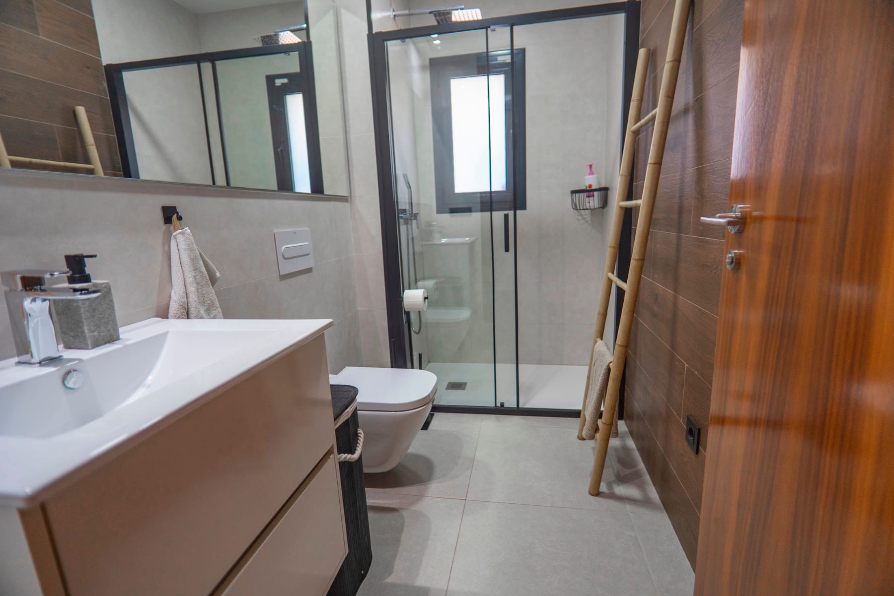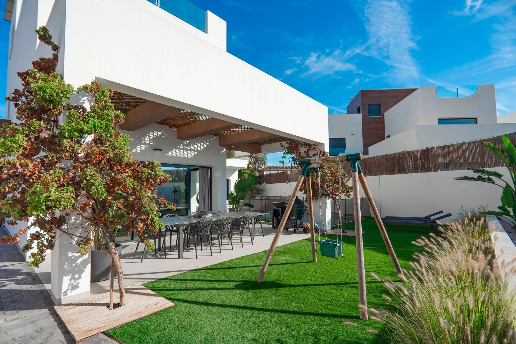 Petra Hönig Inmobiliaria in Ciudad Quesada is proud to present this elegant and contemporary detached villa, ideally situated in the heart of the highly sought-after Ciudad Quesada. Completed in 2020, this home features a bright and tasteful design with clean lines and quality finishes throughout. While more compact than some, its clever layout across two main floors plus a rooftop level ensures excellent functionality, light, and comfort in every space. Ground Floor: The entrance opens to a comfortable living area with an open-plan kitchen and an adjoining utility room. The large windows invite plenty of natural light, giving the interior a warm and airy feel. This floor also features a guest bedroomand a modern bathroom, making it ideal for visitors or convenient single-level living. First Floor: Upstairs, you’ll find two well-proportioned bedrooms, both with their own en-suite bathrooms. One bedroom includes a walk-in wardrobe, while the other provides access to a private balcony that overlooks the plot. Rooftop Level: At the top of the home is a versatile fourth room, currently used as an office, along with two generous terraces offering panoramic views over the surrounding area, the salt lakes, and even glimpses of the Mediterranean Sea. Exterior & Plot: The plot is well-sized yet manageable, featuring a private pool area, several charming patios and terraces perfect for relaxation or entertaining, and off-road parking for multiple vehicles. Prime Location: Nestled in Ciudad Quesada, a vibrant year-round community, this home is within easy reach of shops, restaurants, bars, and essential services. For recreation, the area offers golf, mini golf, a water park, bowling, hiking trails, and much more. There is also a Norwegian school, making it especially appealing for international families. The beaches of Guardamar and Torrevieja are just a 10-minute drive away, and La Marquesa Golf Course is within walking distance.