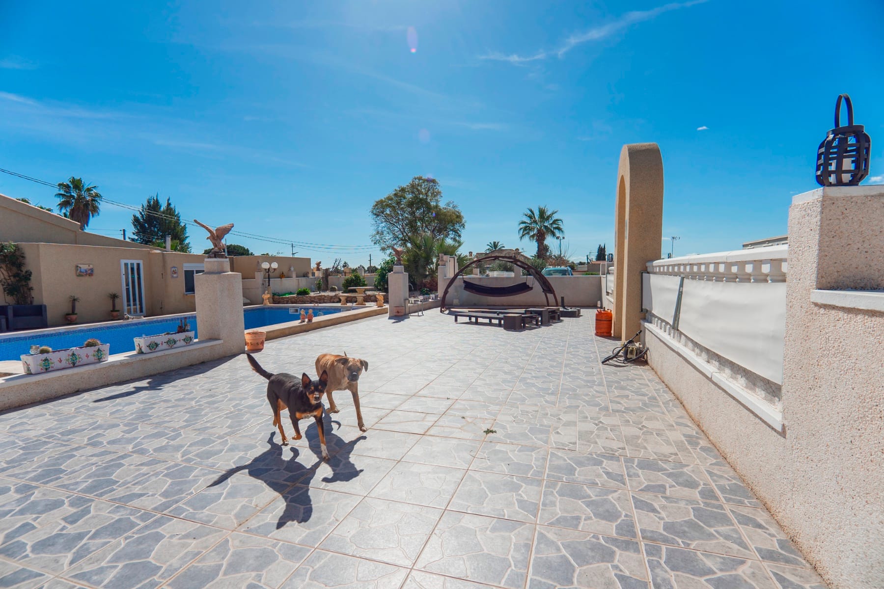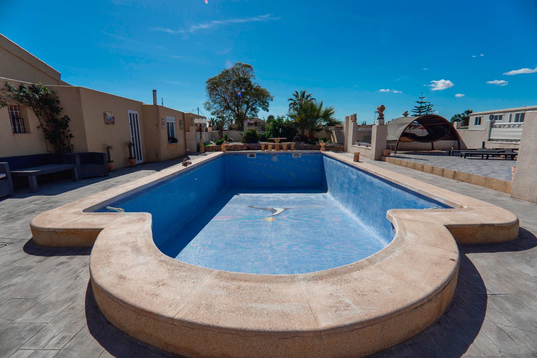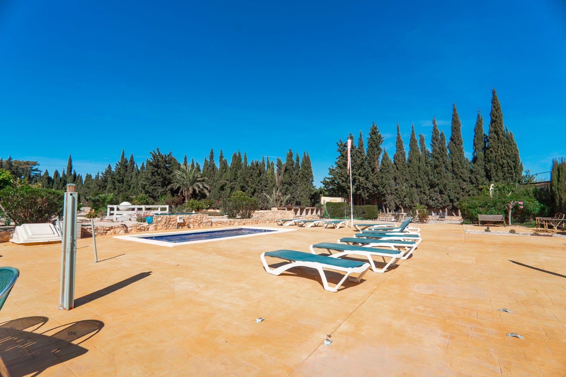 The main pool, measuring 11x6m, is saltwater, recently re-grouted, and surrounded by ample space for lounging or entertaining.
