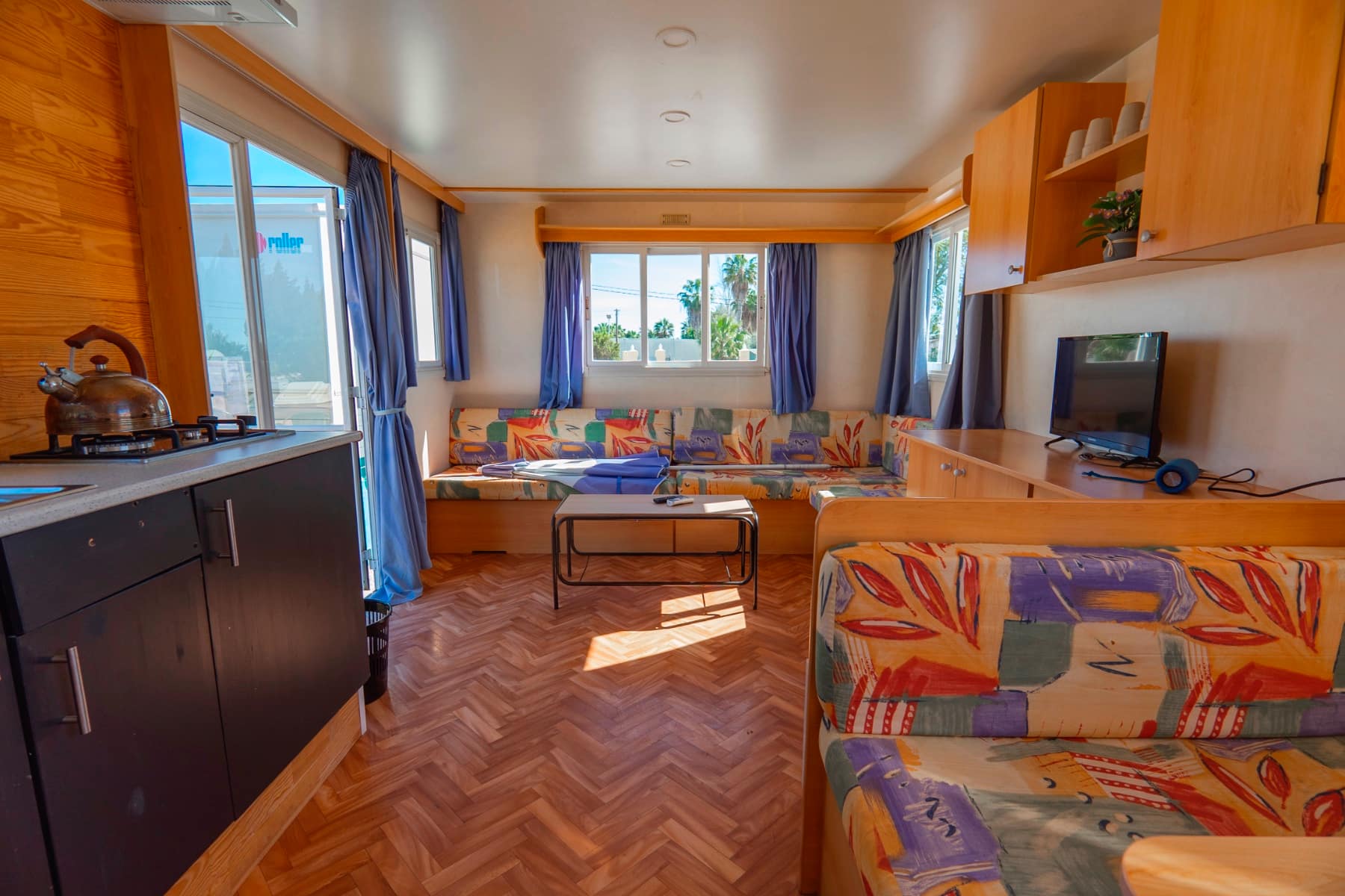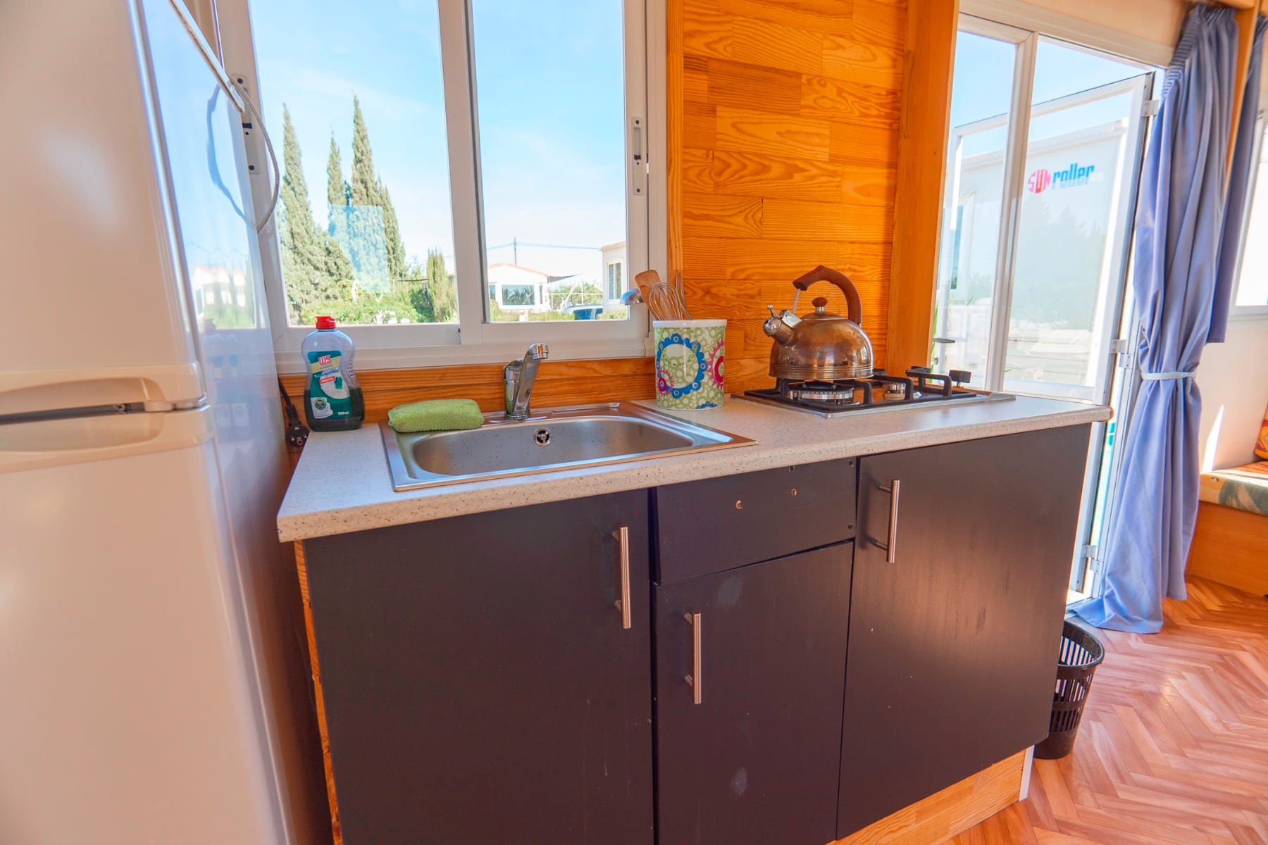 Solar panels supplying all energy needs for both the house and caravans (mains electricity is also available).