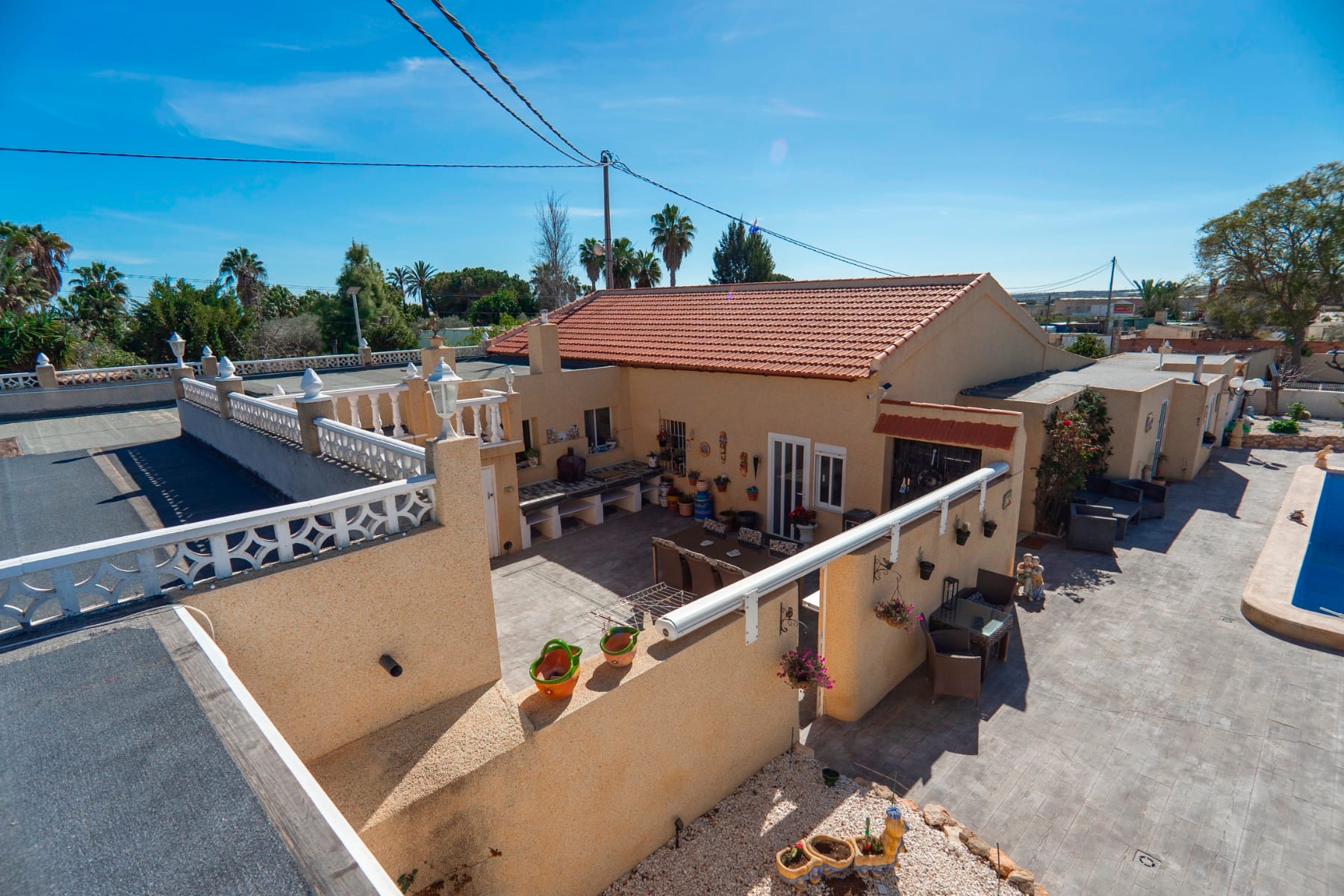 Located in the peaceful enclave of Los Perez, just outside Los Montesinos and a short drive from San Miguel de Salinas, this property offers a rural yet well-connected lifestyle. Los Montesinos is a charming Spanish village, with a busy plaza surrounded by bars and restaurants. It’s known for its vibrant festivals, including an international food festival and the famous Semana Santa (Easter) parade, where the streets are covered in flower petals.