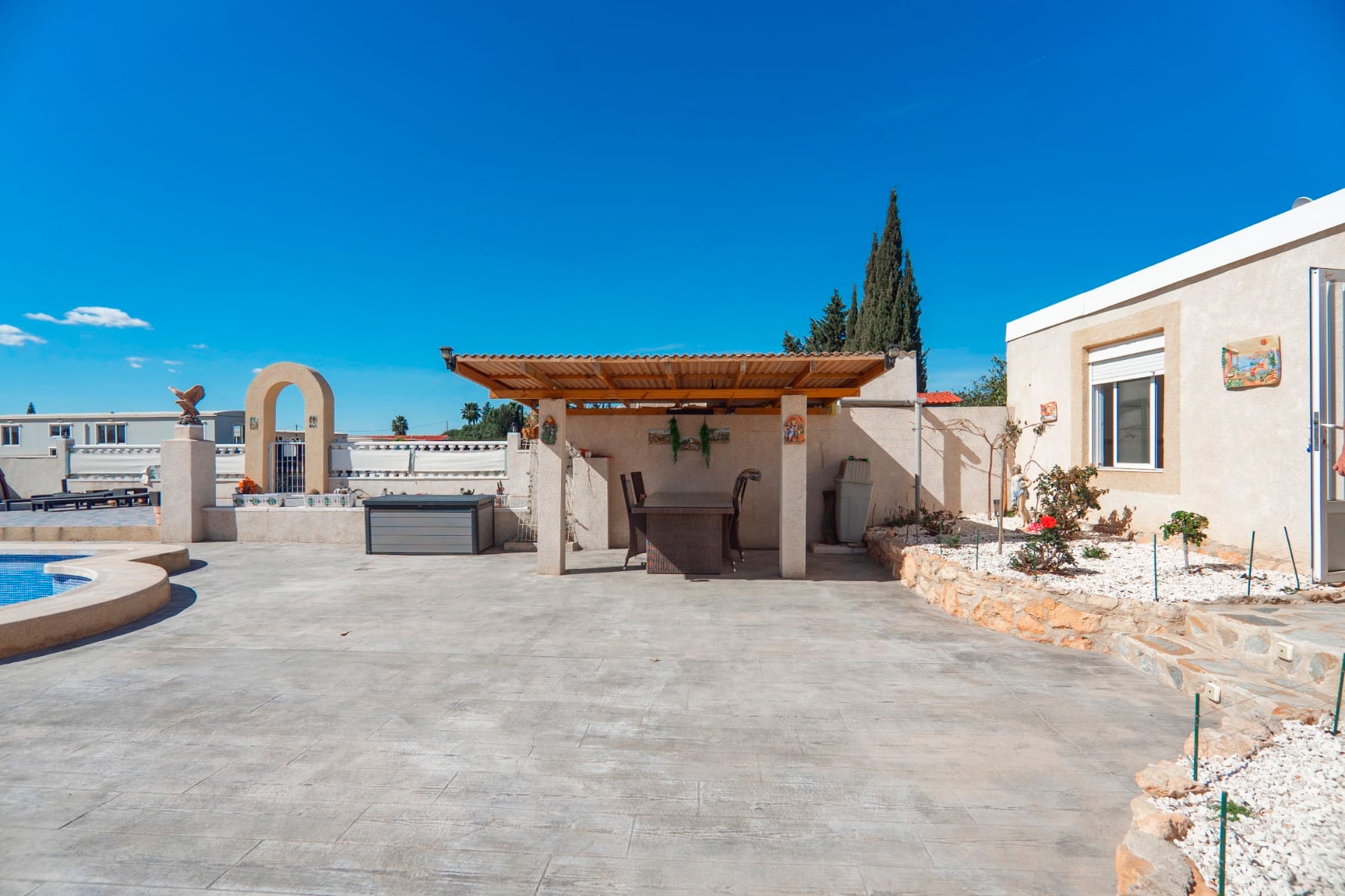 The village combines traditional Spanish charm with a growing international community, offering a perfect balance of local culture and modern amenities. Ciudad Quesada is just a short drive away for additional shops, bars, and restaurants, while the blue flag beaches of Guardamar Del Segura and Torrevieja are only about 15 minutes by car. Alicante Airport is a convenient 40-minute drive.