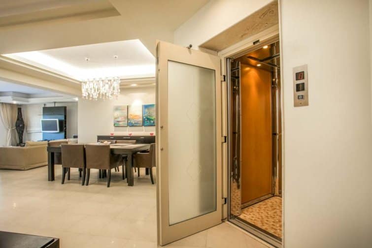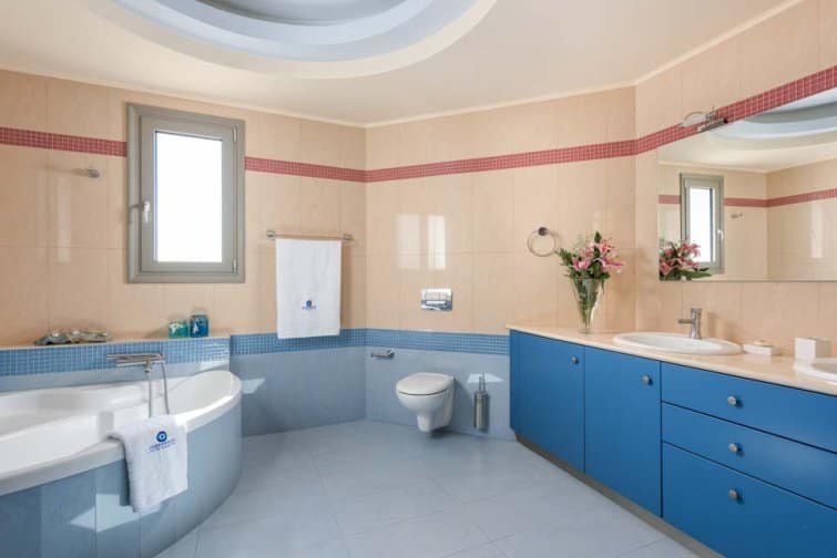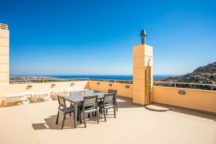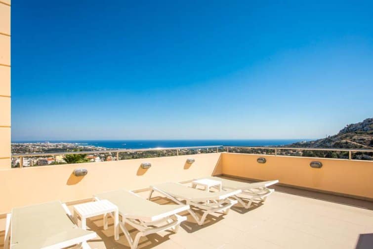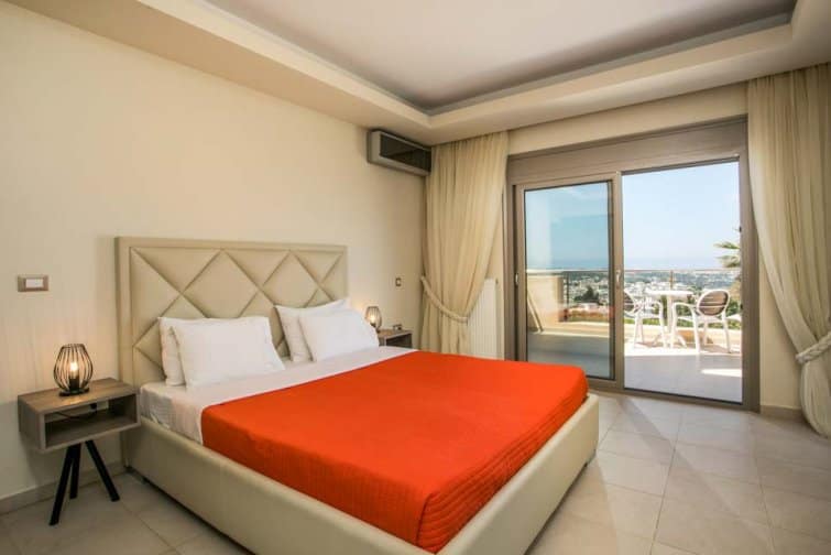 All three bedrooms have a fabulous sea views which you can enjoy from the balcony of each room. The upper level also hosts another master bedroom with a king size bed with en-suite shower room, a balcony and a terrace and all three levels can be reached either by using the marble staircase or the elevator!