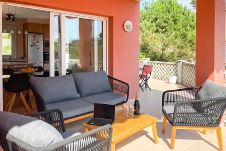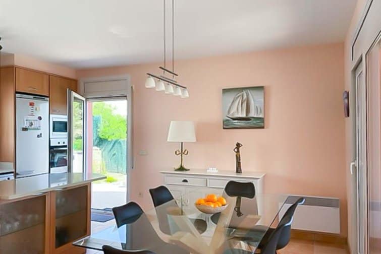 Outside, you will find a large terrace where you can dine alfresco, soak up the sun, and unwind in the comfortable seating area. A portable barbecue awaits for delightful outdoor meals as well as your private swimming pool, comfortable sun loungers, and a charming dining area.