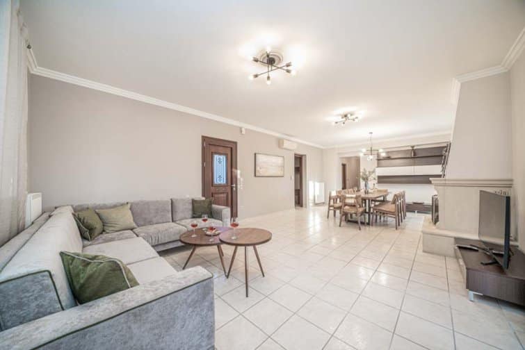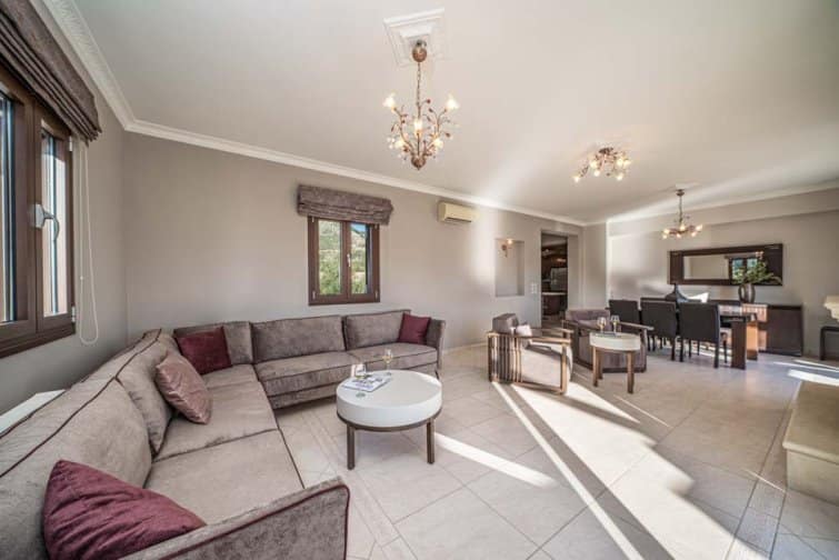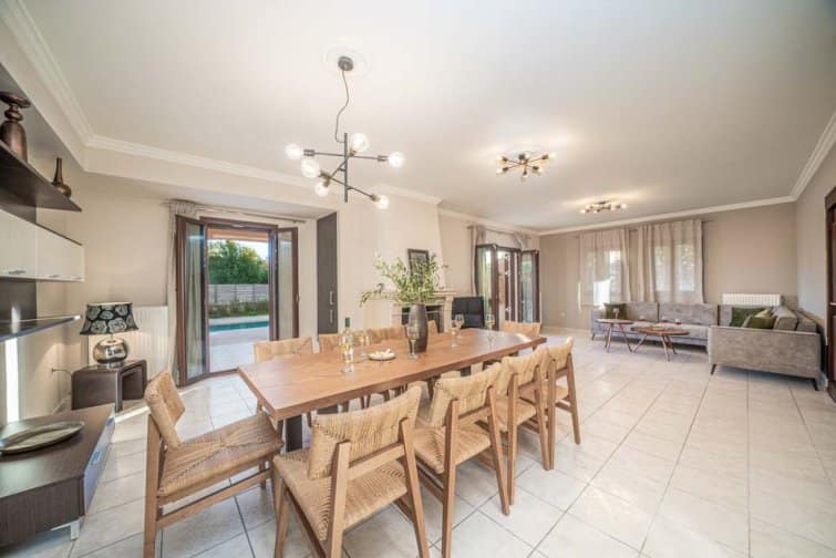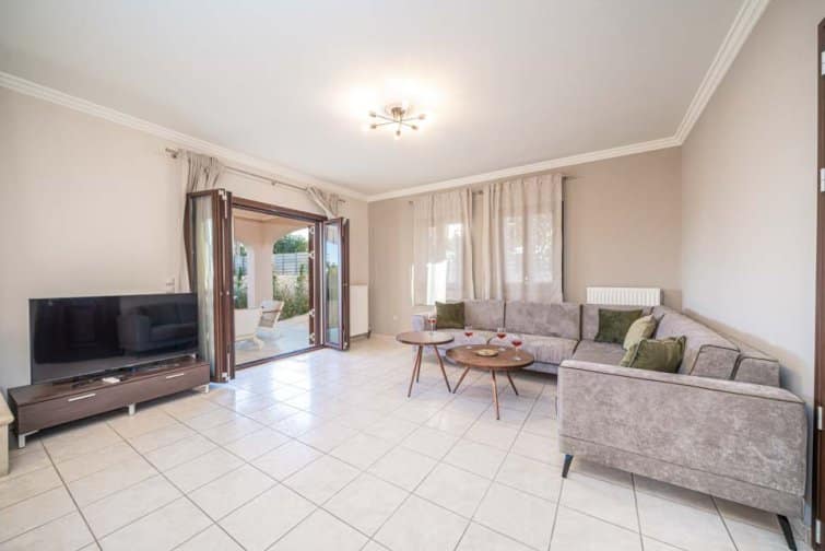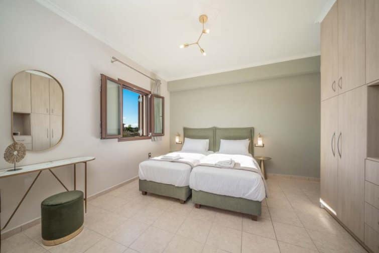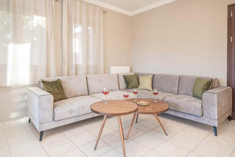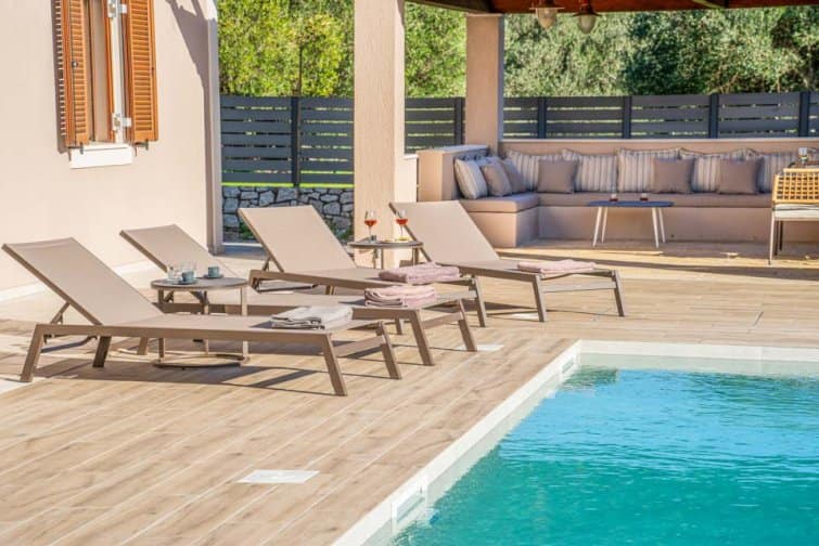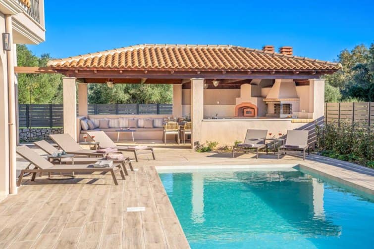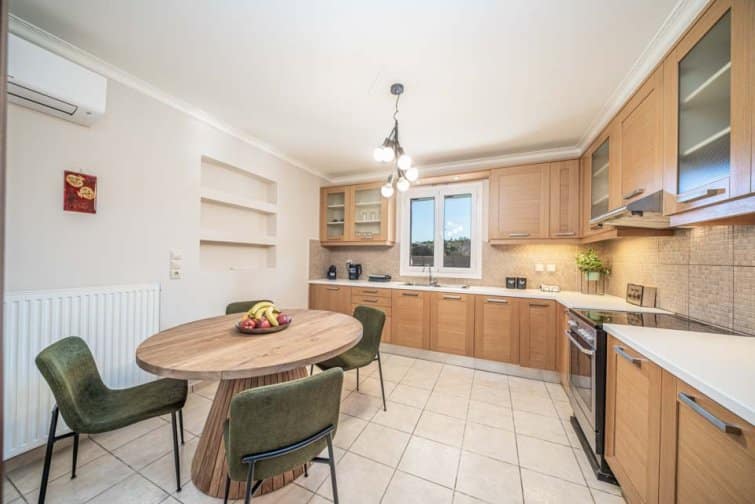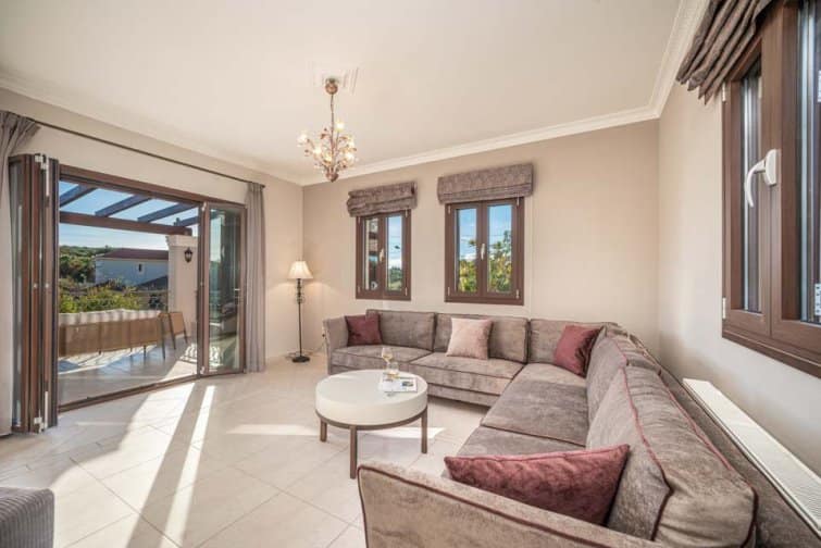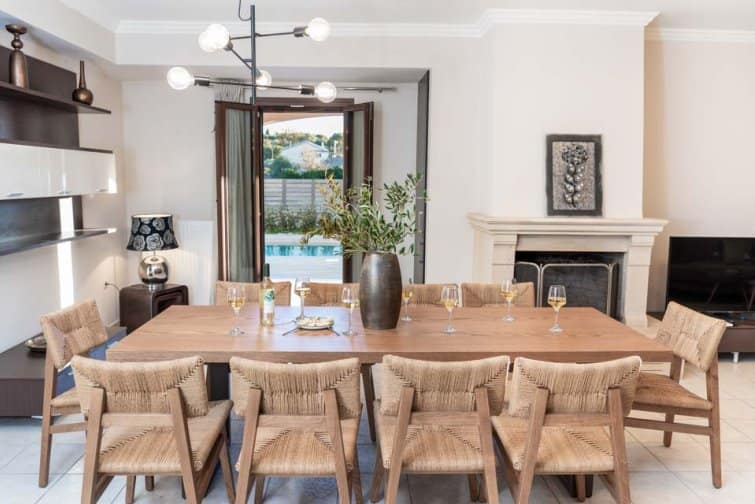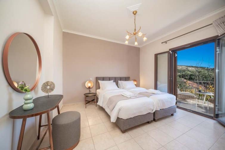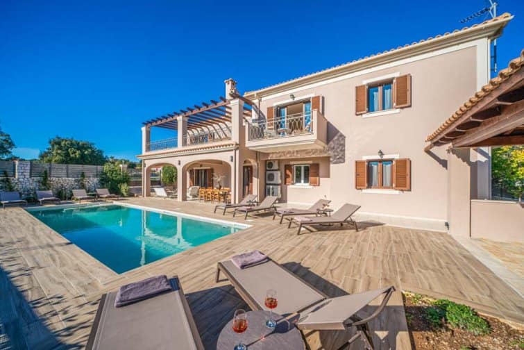 Classis Villa is located in Valerianos, on the island Kefalonia. This impressive five-bedroom, four-bathroom property sits nearby to the sandy shores of Koroni Beach and features inner courtyard views. With less than 300 residents, Valerianos is a sleepy town, providing an ideal location for groups of friends and families who cherish time spent together.