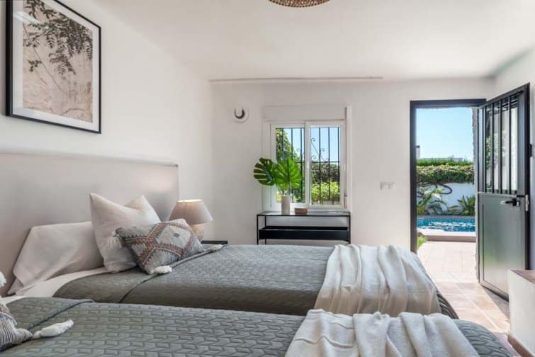 Venture down to the lower ground floor, and you’ll discover a cosy twin bedroom complete with its own ensuite shower room. This bedroom also offers direct access to the pool terrace.