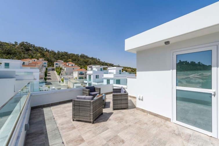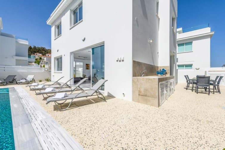 Back downstairs, step through the inviting patio doors to enter your exclusive pool terrace. Dip your toes in the shimmering turquoise swimming pool and bask in the Mediterranean breeze as you melt away into one of the stylish sun loungers. Discover a newfound haven of alfresco indulgence in one of the seating areas of your private patio. Whether you’re sipping a sunset libation in one of the plush sofas or enjoying an evening meal under the stars, our Green Bay Villas set the scene for cherishing unforgettable memories together.