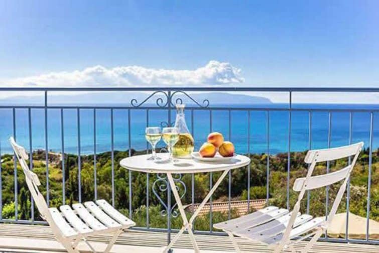Inside, this villa is equally as impressive. Decorated to an incredibly high standard, this property blends elements of traditional and contemporary design perfectly. Boasting exposed brickwork, clean simple lines and bright and airy décor, you will be pleased to call this property home during your stay. Each double bedroom boasts its own ensuite and private balcony with views out over the sea and surrounding countryside. You will also find an open plan kitchen, living room and dining space that you can enjoy at your leisure.