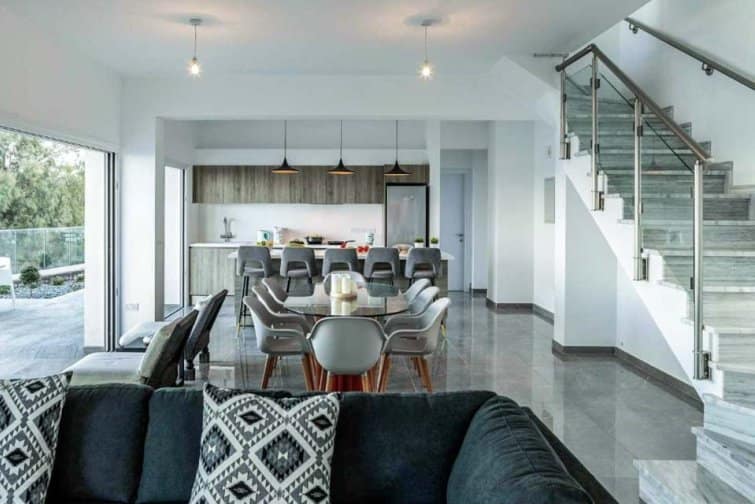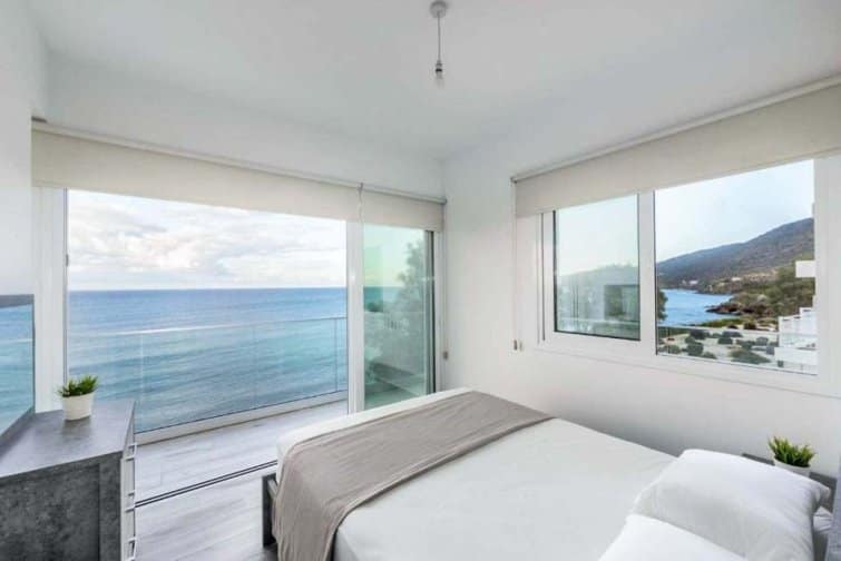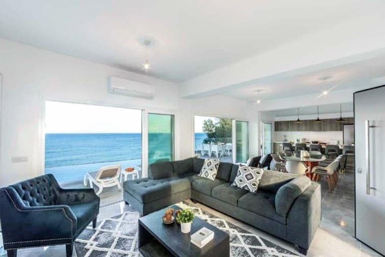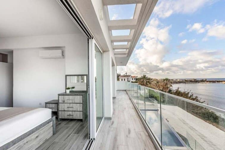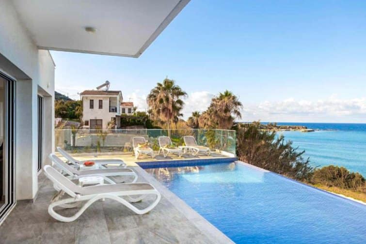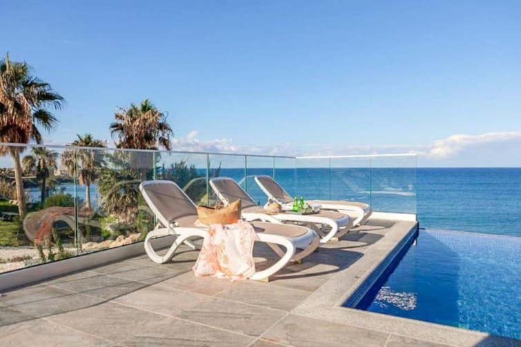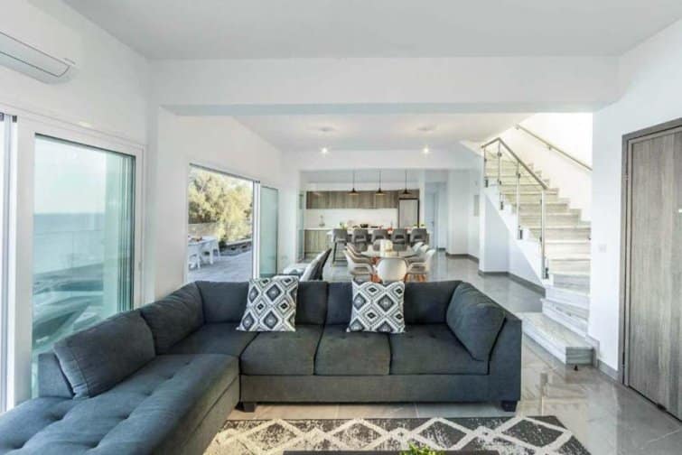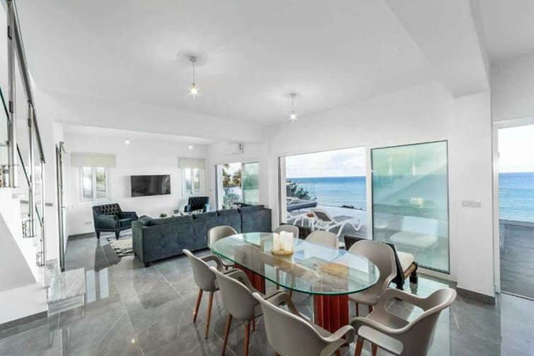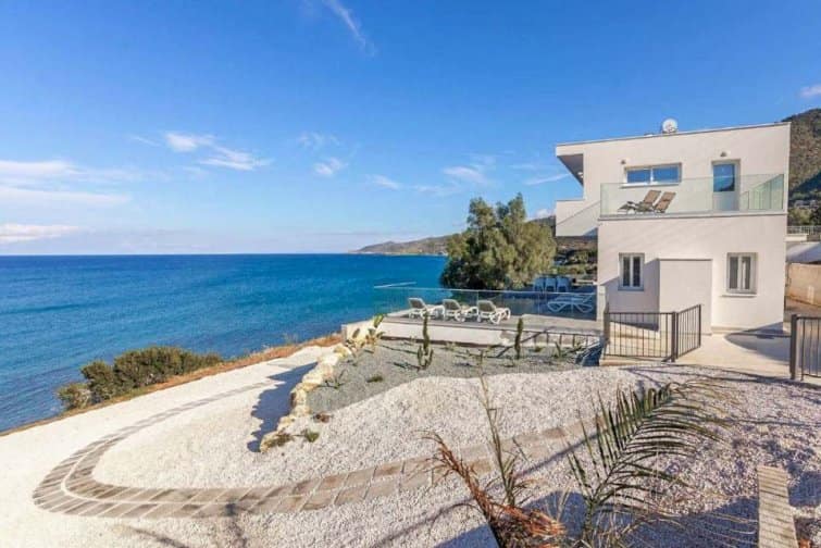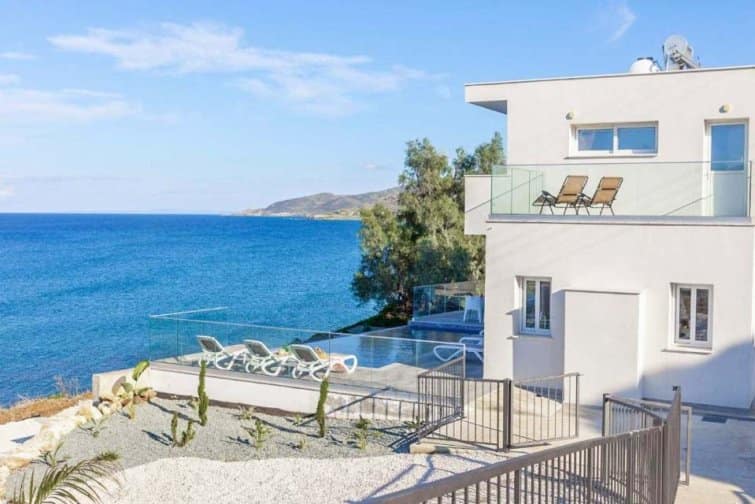 This exquisite villa boasts a contemporary design and an enviable position right on the seafront in the charming village of Pomos.
