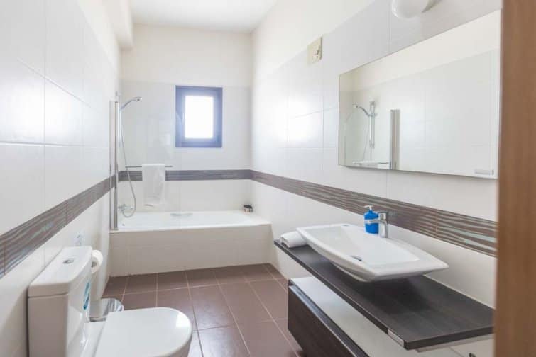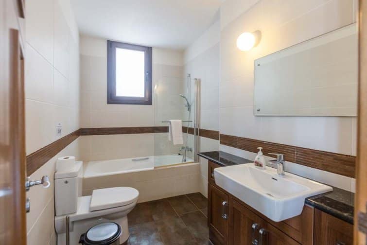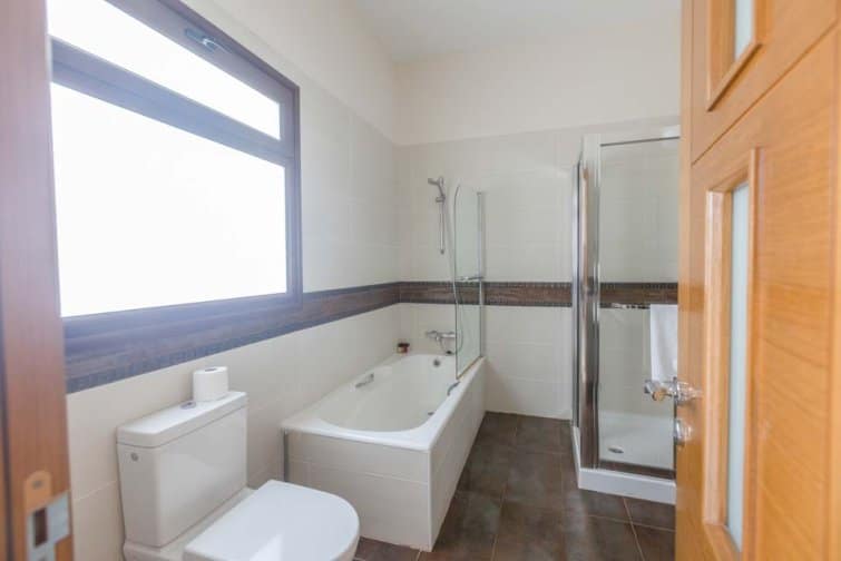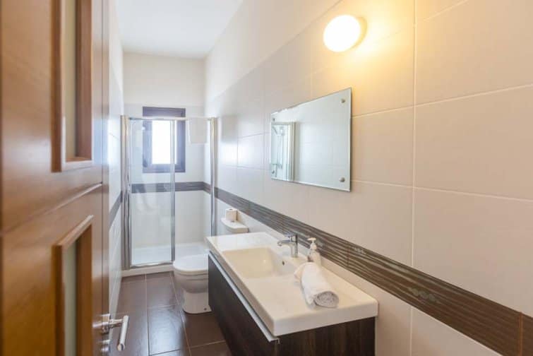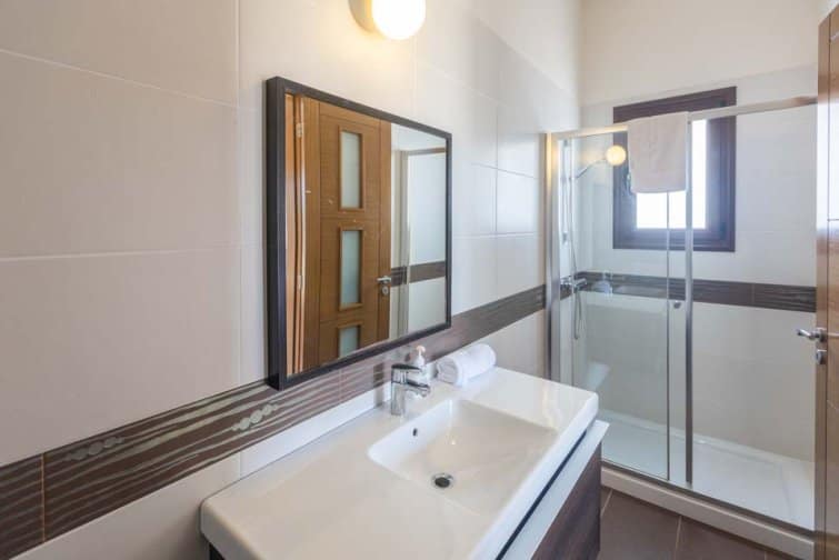 Seven well-sized and comfortable bedrooms are spread across each floor. Downstairs lies two double bedrooms, one with an ensuite. Heading upstairs, you’ll find 5 more bedrooms, 3 benefitting from ensuites, with each bedroom enjoying access to a large outside terrace, offering a serene spot to savour panoramic sea views. Upstairs, you’ll also find a utility room with a washing machine and tumble dryer.