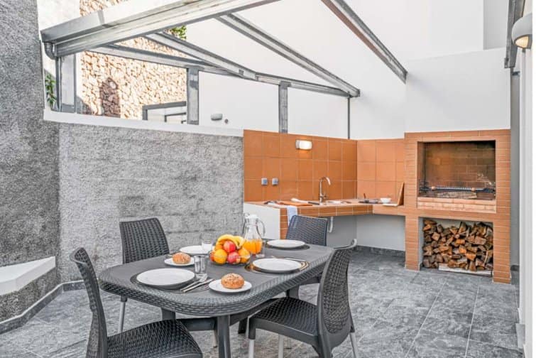 Take a dip in the pool to cool off in the midday sun or lay back, relax, and enjoy a good book on one of the sun loungers. For al fresco dining, there’s a shared built-in BBQ and outdoor eating area.