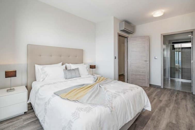 Fully air-conditioned throughout, this spacious villa sleeps six in its three bedrooms, all positioned on the first floor. Two of the bedrooms boast comfortable king-sized beds, one with en-suite, and open up onto a shared balcony. The third has two single beds.