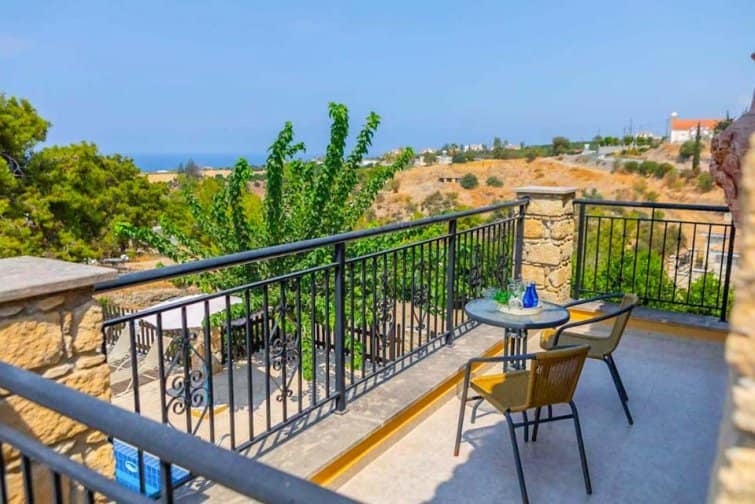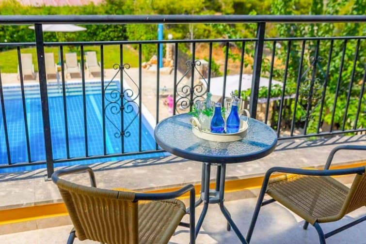 With four bedrooms, this villa is ideal for up to eight guests. Each with its own bathroom facility, you won’t have to worry about sharing as you’ll all have your own space. From one of the first-floor balconies, you’ll find a bistro set, where you can enjoy a morning coffee whilst admiring the very distant sea views and countryside that surrounds the villa.