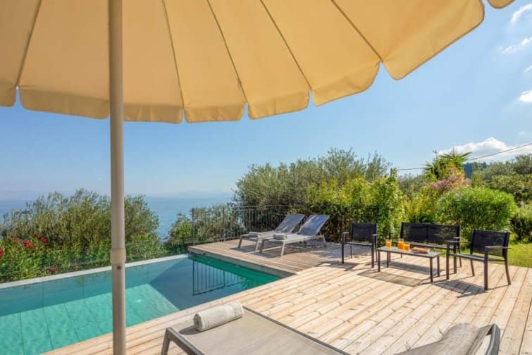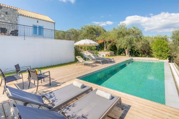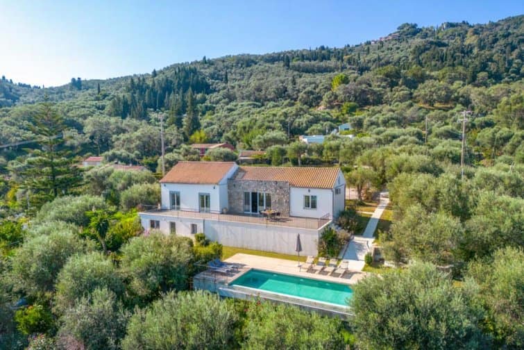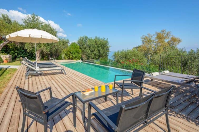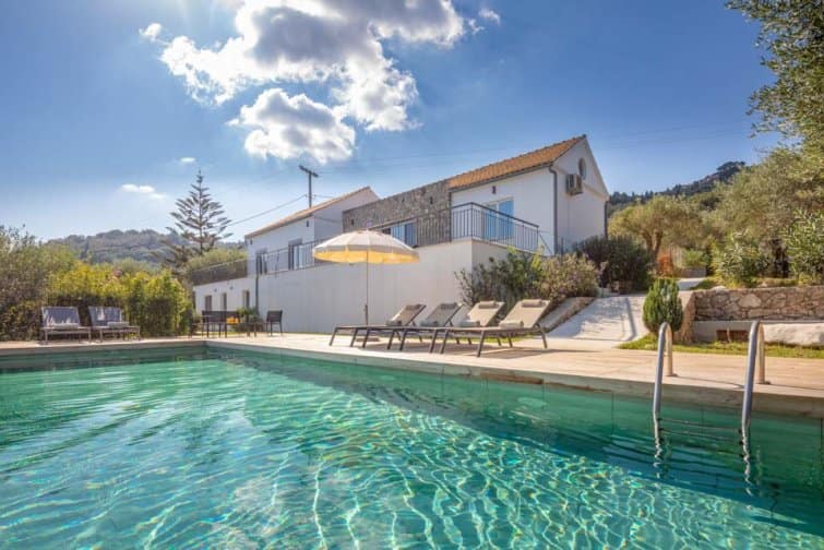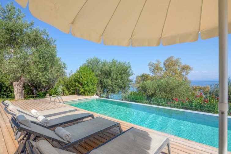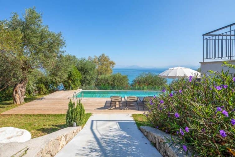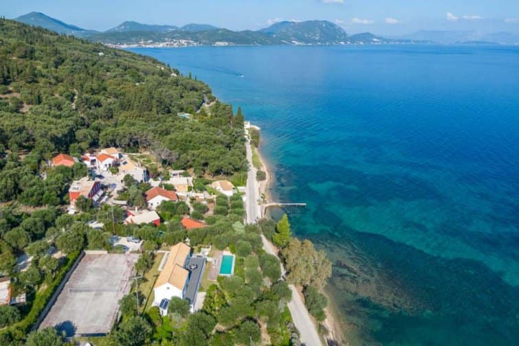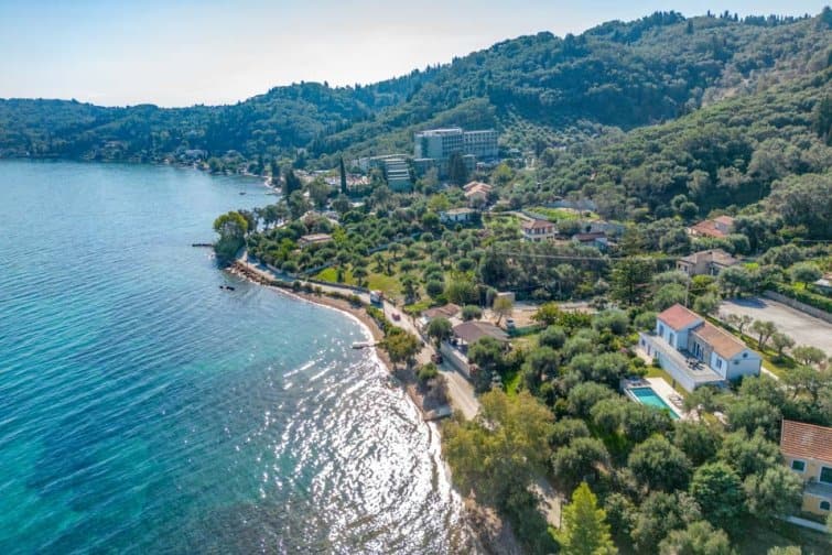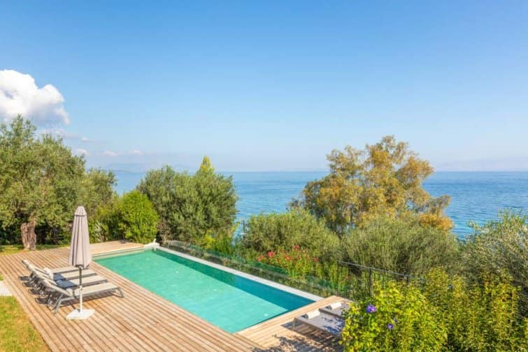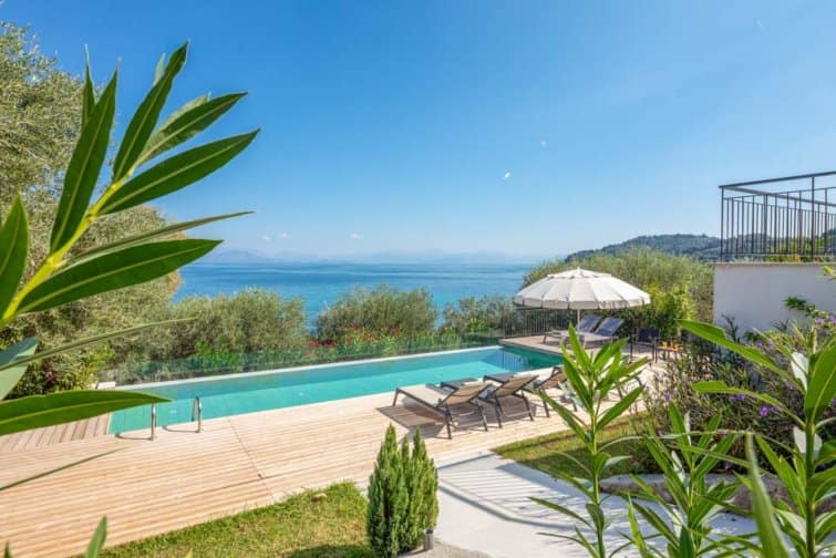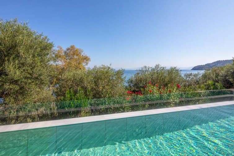 Providing sweeping vistas over the Ionian Sea, Villa Apanemia Mare is located on Corfu’s idyllic coast.