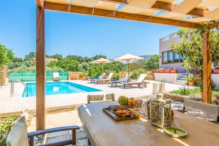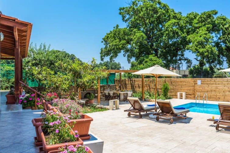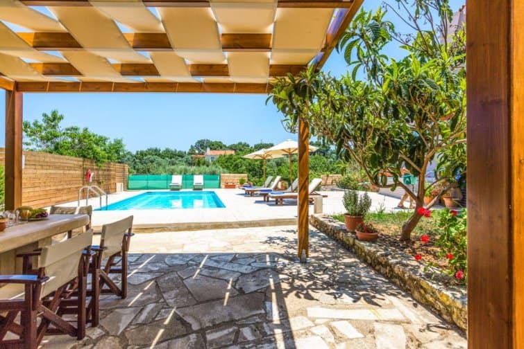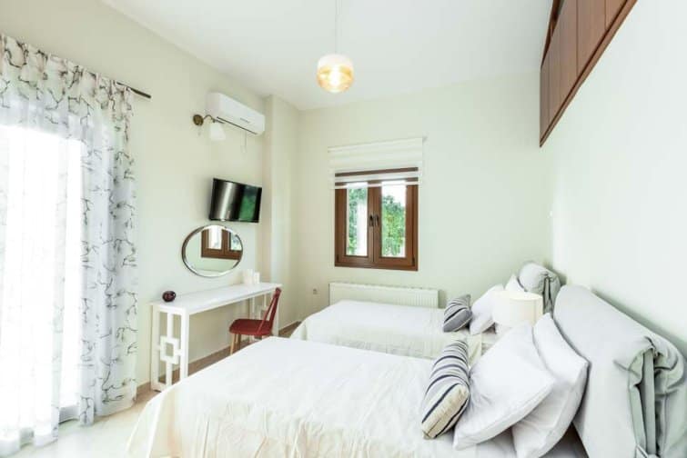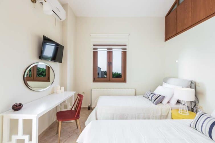 Located a stone’s throw from the inland village of Prines, we find Villa Aspa, a charming three bedroom villa. At car optional, you’re not far from a handful of delicious restaurants and a local convenience store where you can pick up fresh produce and a selection of drinks.