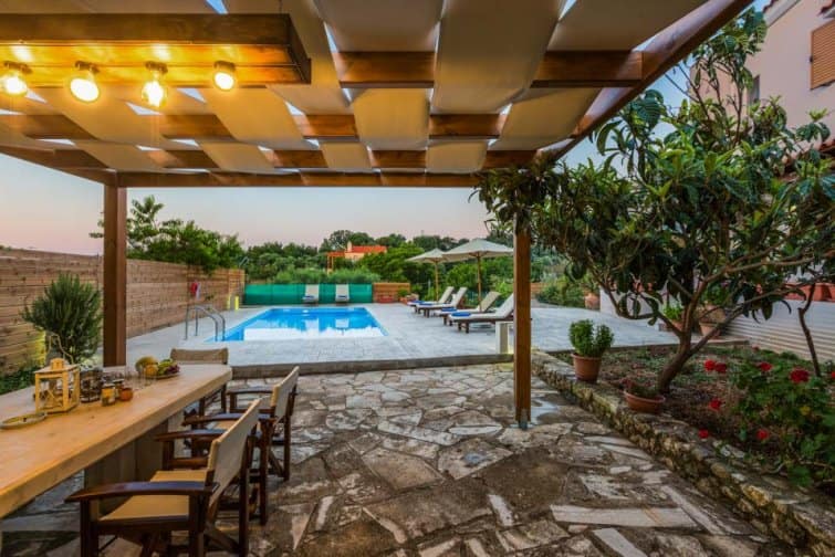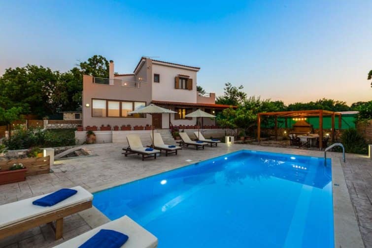 The villa offers a relaxing pool area, lined with comfy padded sun loungers and dotted with pretty floral plant pots. There’s a BBQ area for your alfresco lunches, and a great spot come day or night, for chatting the evening away and spending quality time with friends and family. The interiors are just as pretty, with soft furnishings, trendy bedrooms and complimentary pool towels.