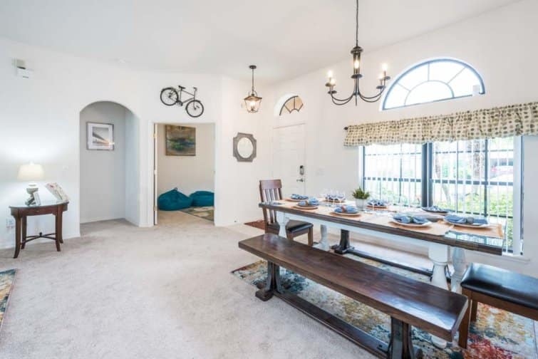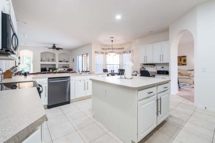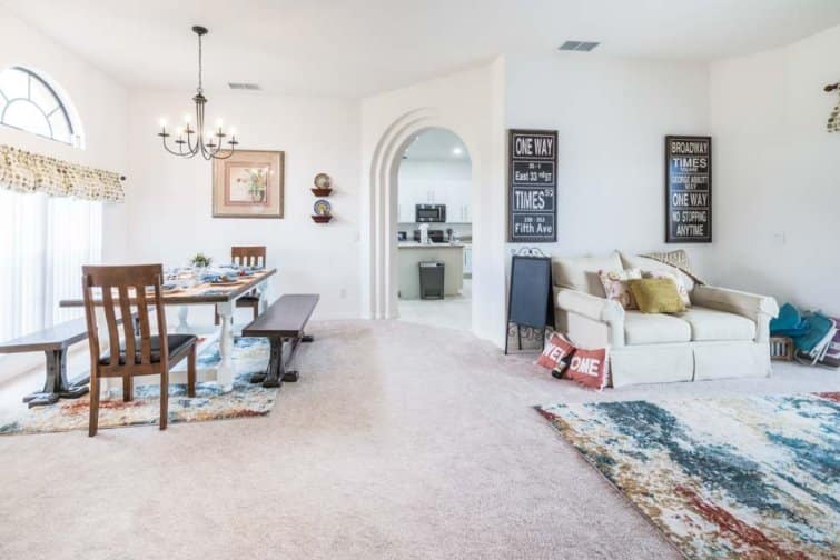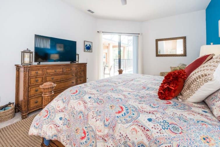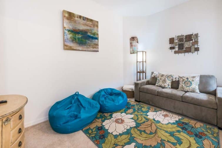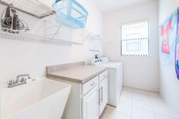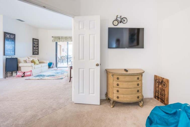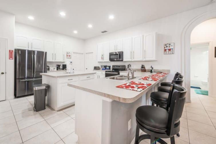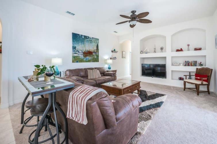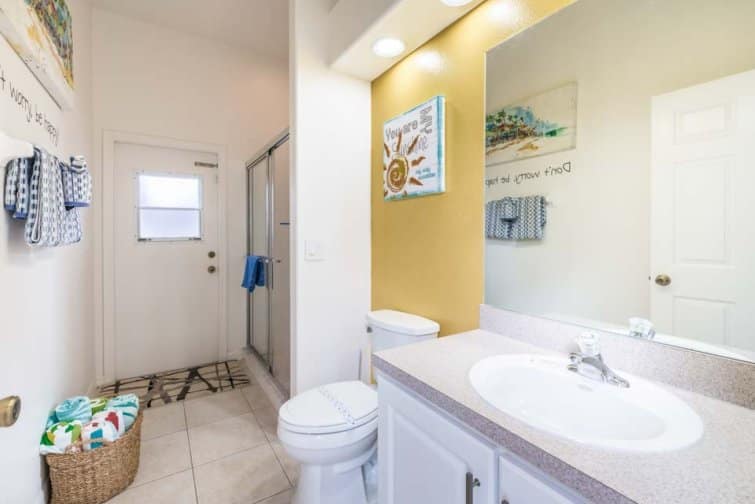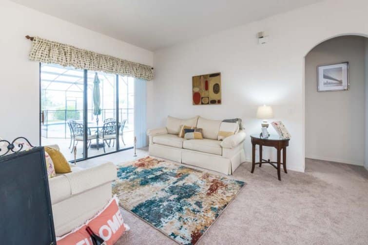 This 5-bedroom 3 bath home is located in Legacy park, just 15 minutes from Disney World and 30 minutes from Universal Studios and SeaWorld. This spacious single-story villa sleeps 8 comfortably. There are 2 separate living and dining spaces as well as an air-conditioned games room with pool table, foosball and TV. The west-facing pool area with a private pool with spa has a wide range of seating options as well as a shaded lanai and 2 outdoor dining areas. This villa also benefits from complimentary pool towels and a food and drinks welcome pack upon arrival.