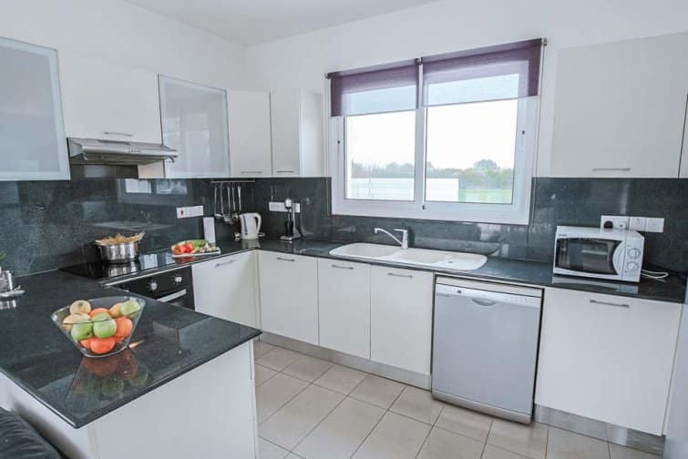 The villa is a great choice for bookings of up to six people, as you’ll find three fully air-conditioned bedrooms and two bathrooms. The fully equipped kitchen makes for a smooth stay, as you’ll find all the cooking essentials you may need on your self-catering holiday.
