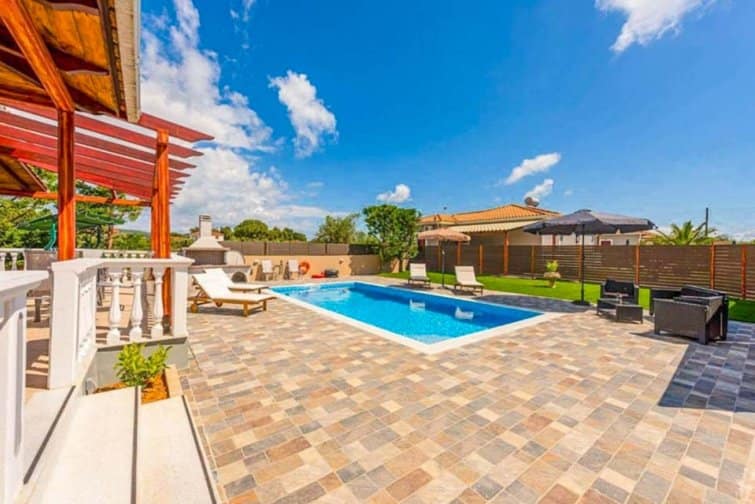 Outside, this villa is made for sunshine-filled days and the happiness that comes hand in hand-with being outdoors. Boasting a private swimming pool, a wonderful tiled terrace area, plenty of sun loungers and a fabulous al fresco dining space complete with BBQ facilities, you won’t want to leave your own private piece of paradise.