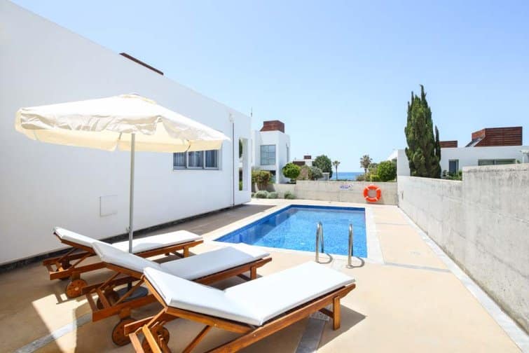 Villa Cerulean Paphos is a one bedroom, one bathroom villa situated in the popular resort of Paphos, close to all amenities including the beach. It boasts it’s own private pool and modern interior, featuring a fully equipped kitchen to allow your own self catering if you wish to dine in, an open plan lounge & diner with air conditioning, and large windows to get the most of the sunshine.