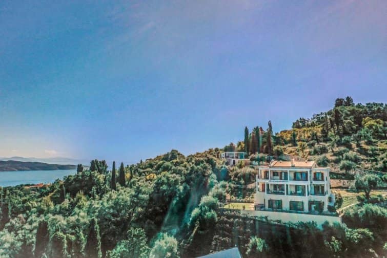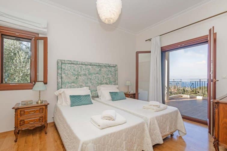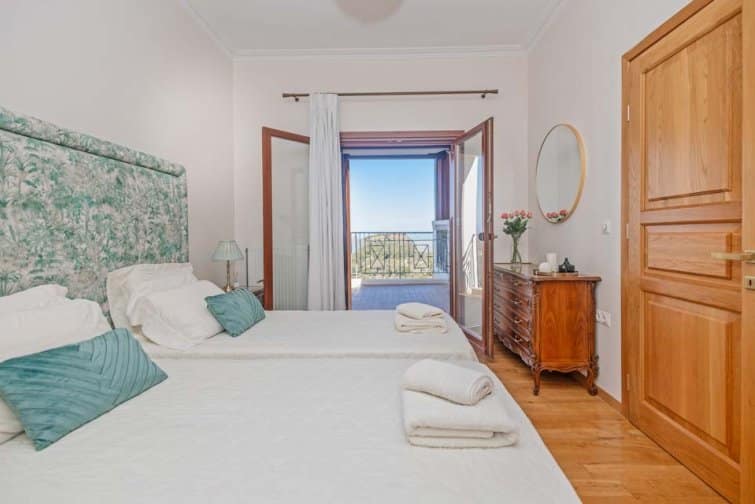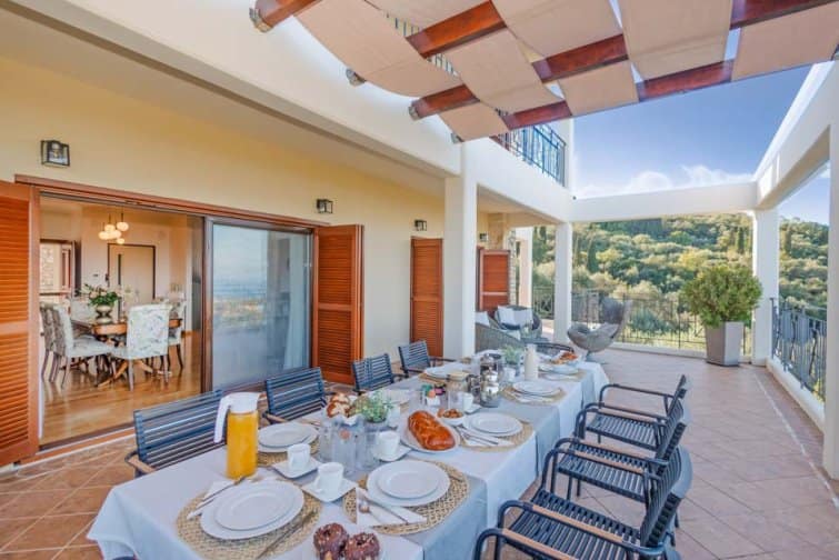 This incredibly spacious villa enjoys a privileged, elevated position on the top of a hill between the magical resort of Kassiopi, the small Venetian village of Kremmithas, St Stephano and Erimitis. With six bedrooms, the villa is perfect for large family get togethers or groups of friends wanting to celebrate a special occasion. Villa Claire Kassiopi boasts exceptional outdoor space including a tennis court and beautiful infinity swimming pool as well as a spa area with a hammam and gym, lots of entertainment and gorgeous gardens full of roses, olive trees, herbs, vibrant flowers and towering fir and pine trees.