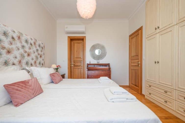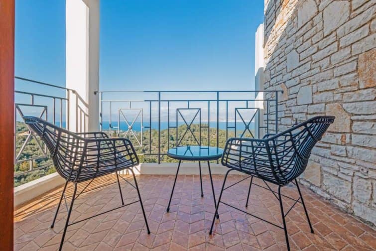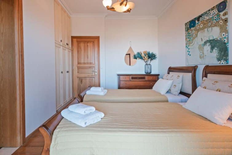 The first floor boasts an open plan study with a living area and access to a terrace with beautiful vistas, the master bedroom suite, a twin bedroom and another double. The master is a wonderful room with a comfy kingsize bed, an ensuite whirlpool bathroom and a terrace. The twin boasts an ensuite shower room and the double offers a whirlpool bathroom. Both of these rooms also offer terrace access with stunning views.