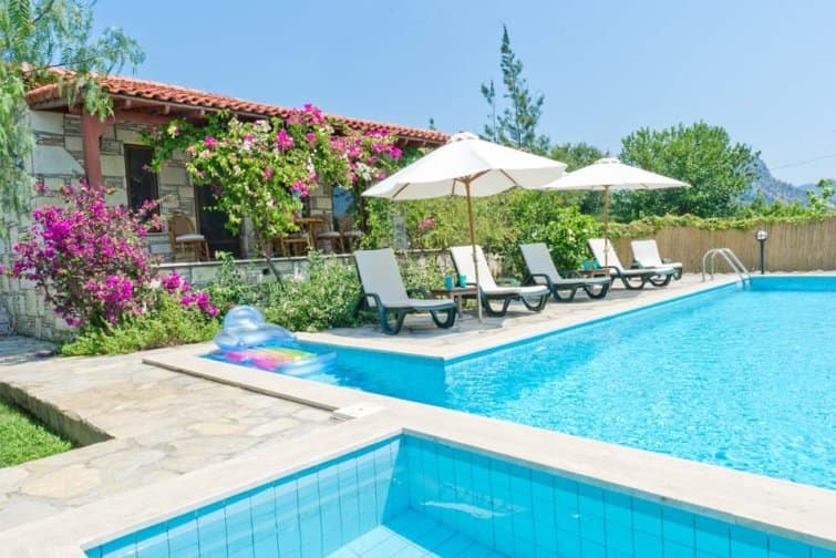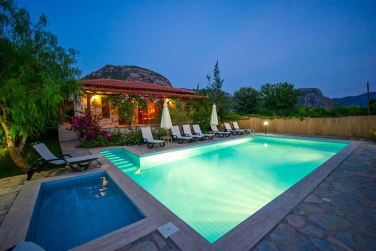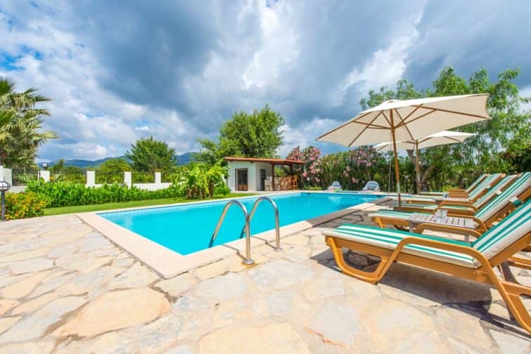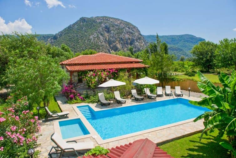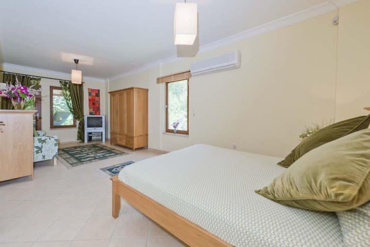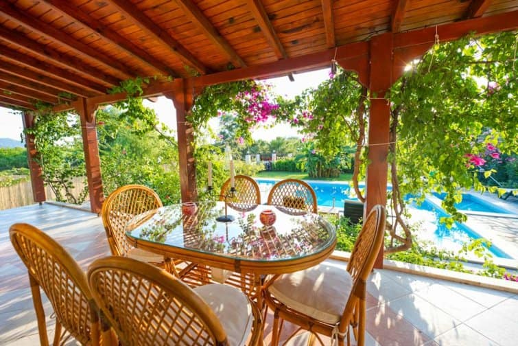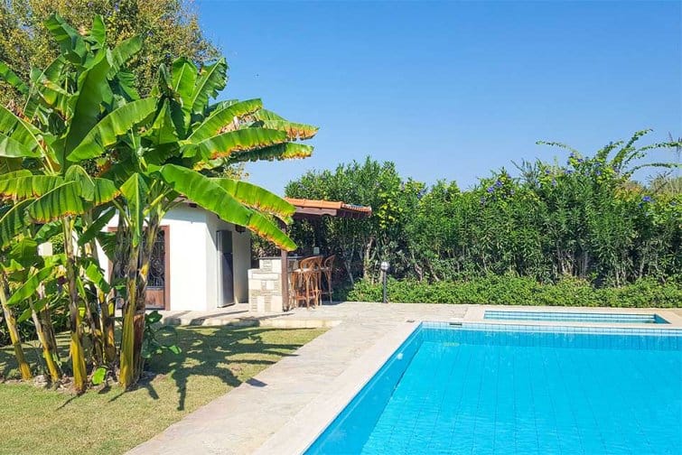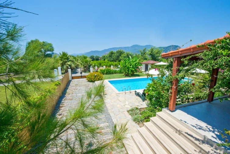 Venture outdoors, and you’ll be captivated by the private pool that beckons you to indulge in refreshing dips under the warm Dalyan sun. Surrounded by a lush garden, the villa’s outdoor space invites you to bask in the serenity of nature, providing a perfect backdrop for al fresco dining or simply soaking in the tranquility.