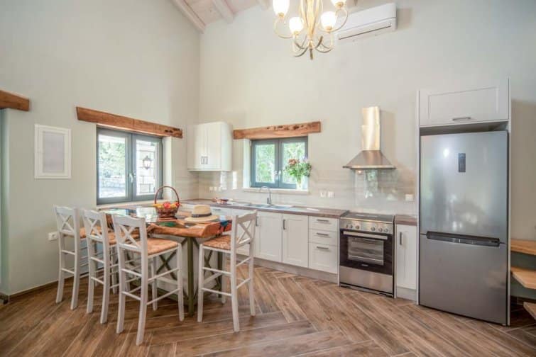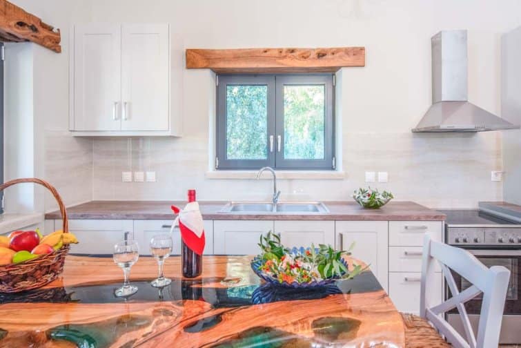 Tap into unbridled relaxation at Villa Dias – designed for comfort, romance and quality time spend with your nearest and dearest, sleeping up to 4 people for a cosy and tranquil retreat. Outside, the villa blends seamlessly with the region’s traditional white stone facades, surrounded by rustling olive trees whose gentle scent carries on the breeze. Inside, modern elegance meets traditional comfort, with cool, neutral tones throughout the property, accented with rustic hand-crafted pine and olive wood elements and all the modern conveniences you’ll need to make your stay unforgettable.