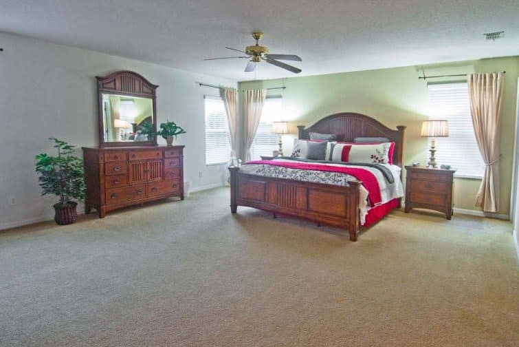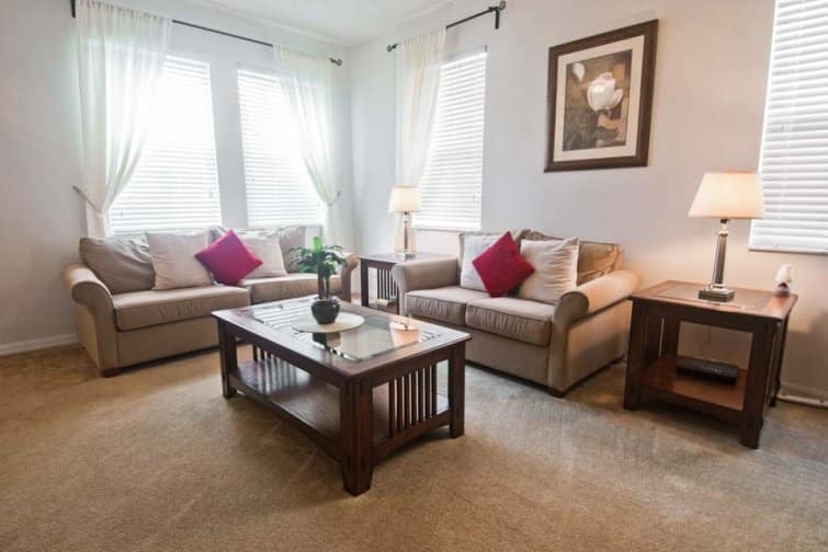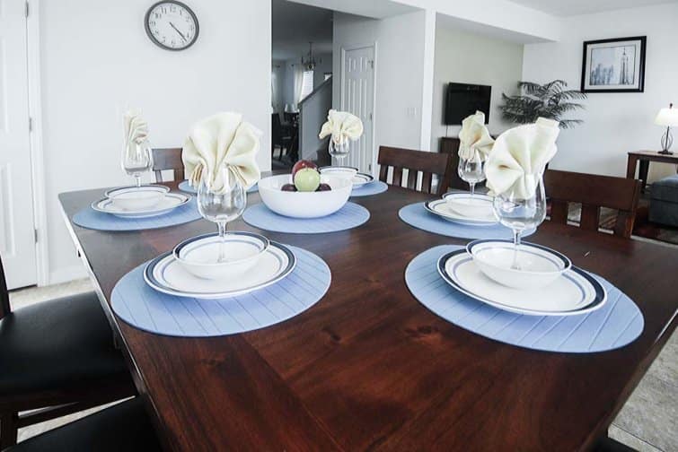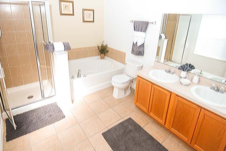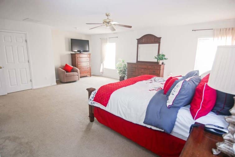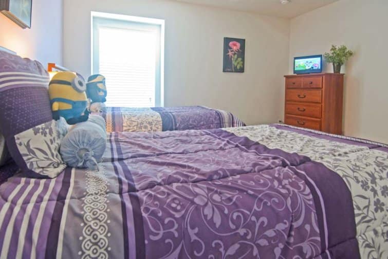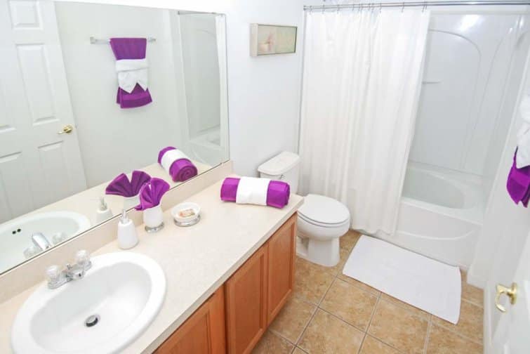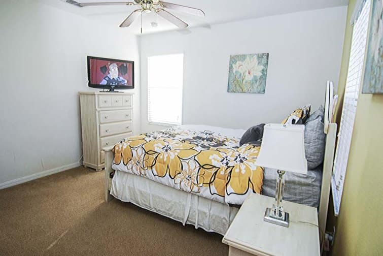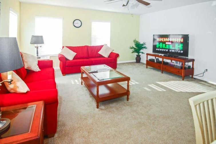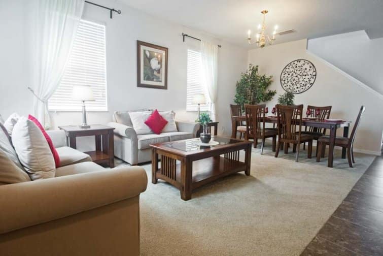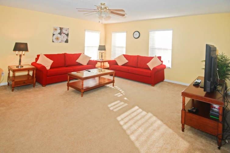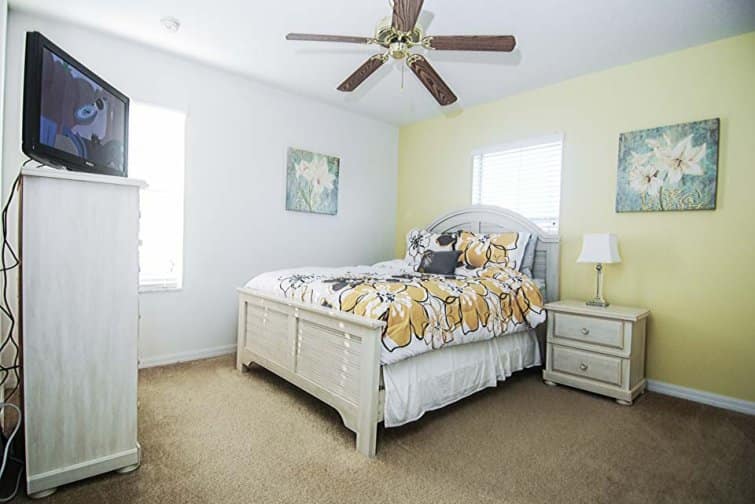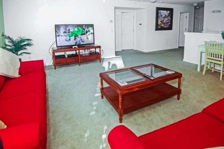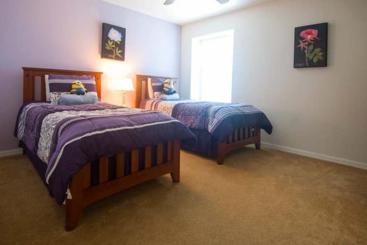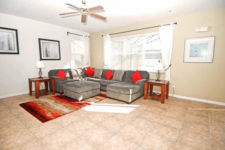 Disney Retreat lives up to its name, offering an idyllic escape just a hop away from the busy Disney theme parks and is located in the Legacy Park Resort. As you step into the villa, you’re greeted with an inviting living area designed with a minimalist touch, with plush sofas and contemporary decor. With not one but three family lounges, including a loft area upstairs with a games console, there’s enough space for the whole family to stretch out. If you’re in the mood for a little friendly competition, make a dart to the action-packed games room, featuring a pool table, foosball, dartboard, and an arcade game for endless family fun. With 5 bedrooms, it’s the perfect size for larger groups or multiple families traveling together. The kitchen is a modern masterpiece, full of high-end appliances and a breakfast bar if you need to stop for a quick bite.