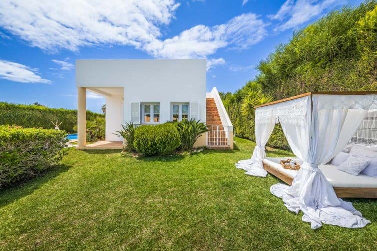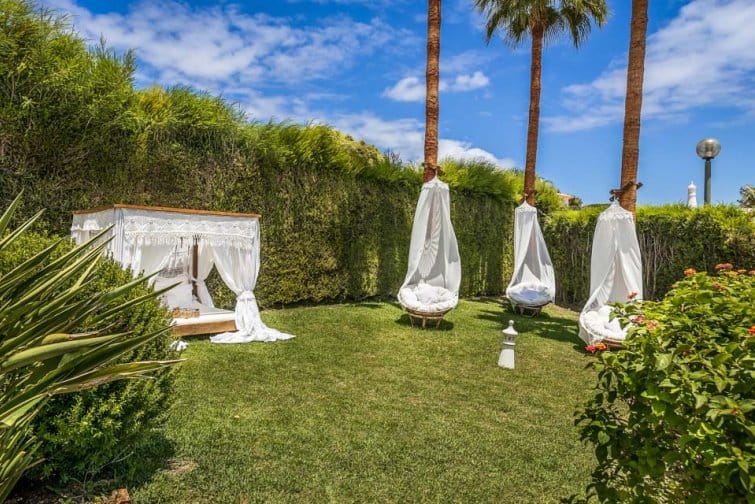 And this villa certainly won’t disappoint when it comes to providing a fabulous outdoor space to enjoy. Picture perfect in every space, this villa boasts a large private swimming pool that you will want to dive straight into, a beautiful outdoor garden area with sun loungers, tipis, an inviting day bed for siestas, as well as hammocks to relax on. There’s also a fantastic shaded outdoor dining area that is perfect for embracing al fresco dining morning, noon and night. Outdoor living doesn’t get better than this.