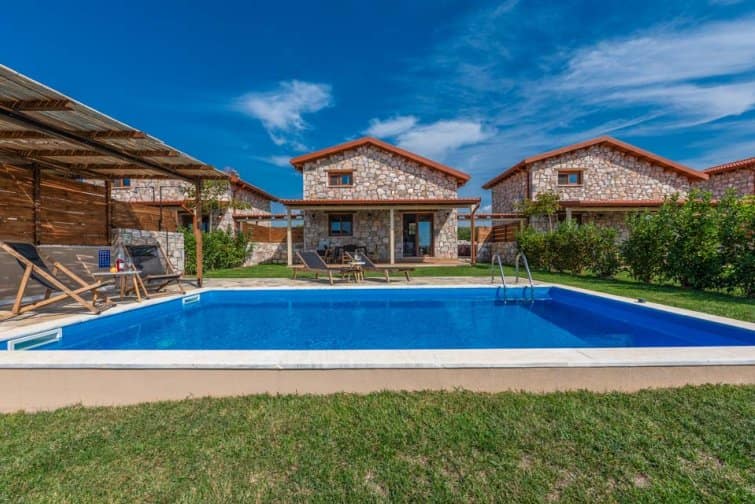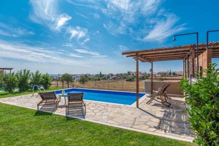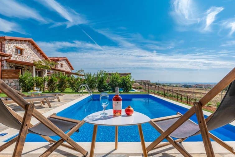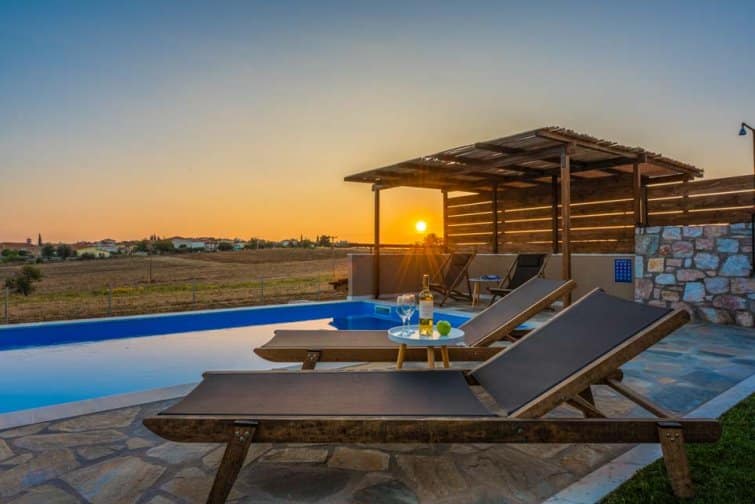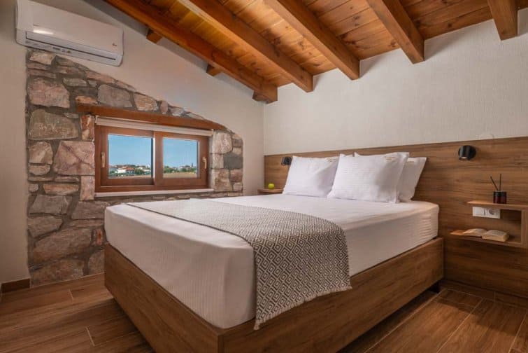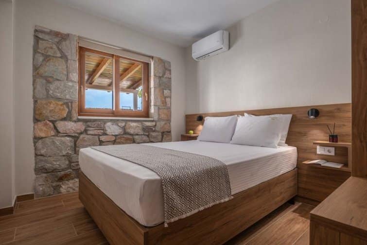 This newly constructed resort consisting of charming stone villas, each boasting its own private garden and pool. Nestled amidst picturesque farmlands, this beautiful retreat is just a short stroll away from the quaint village of Flogita and its beautiful sandy beach. Guests here have the unique opportunity to immerse themselves in a natural environment surrounded by olive trees, watermelon fields, and other crops. They can experience the daily life of the local inhabitants and witness the hard work of nearby farmers. This serene setting offers an ideal choice for both couples and families.