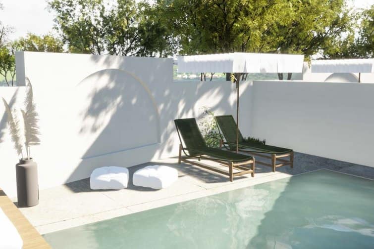 Imagine lounging on the expansive terrace, basking in the sun with a sparkling beverage in hand, all beside the tranquil waters of your private pool. The villa’s outdoor space is a haven for relaxation and entertainment, featuring a traditional brick-built BBQ area, perfect for savoring grilled delights and sharing mezze platters in the open air.