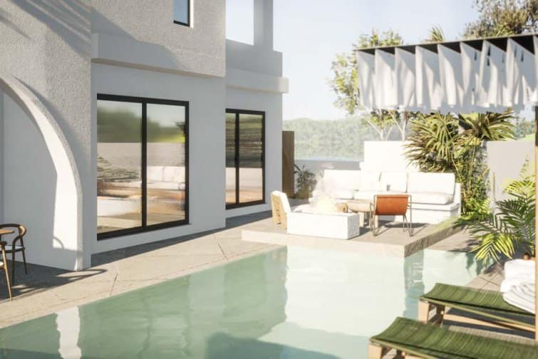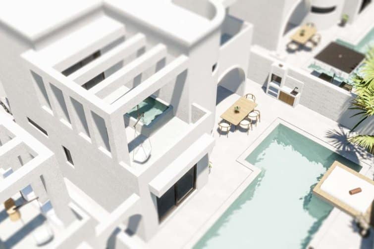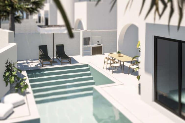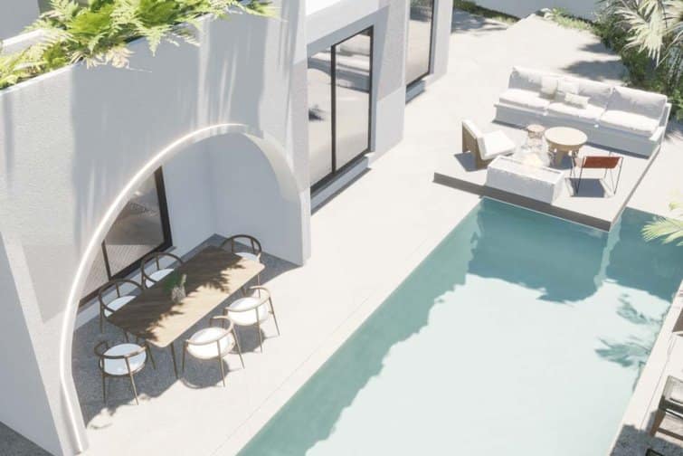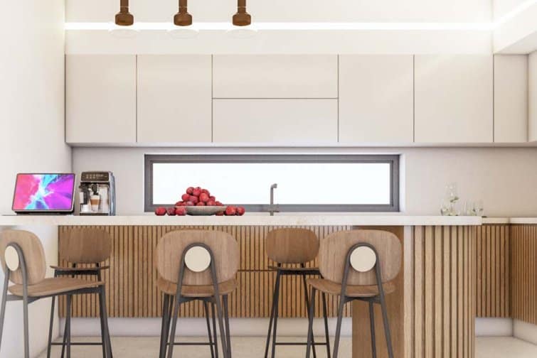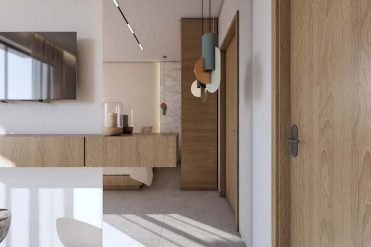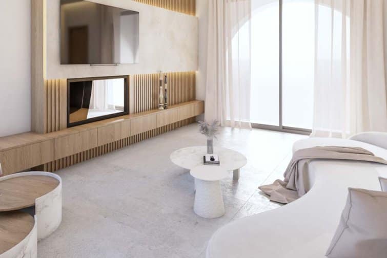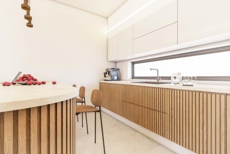 Step inside to discover a modern interior that exudes contemporary elegance. Adorned with wooden accents, pristine white-washed walls, and sleek stone-style flooring, Villa Evelia captivates with its unique charm.