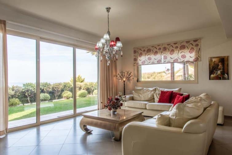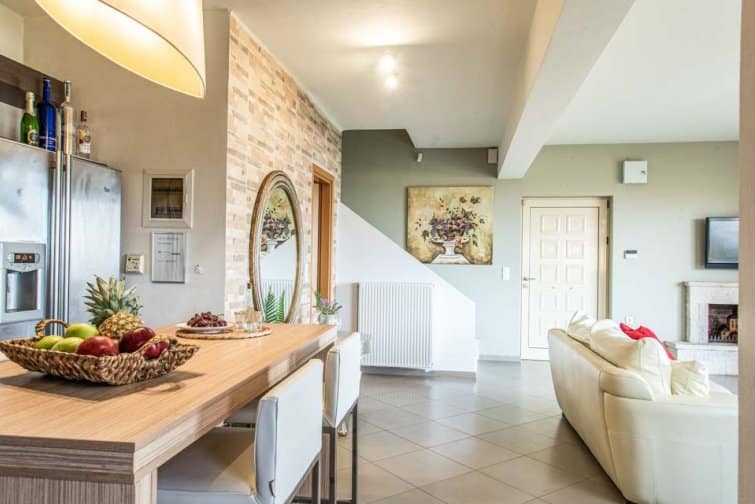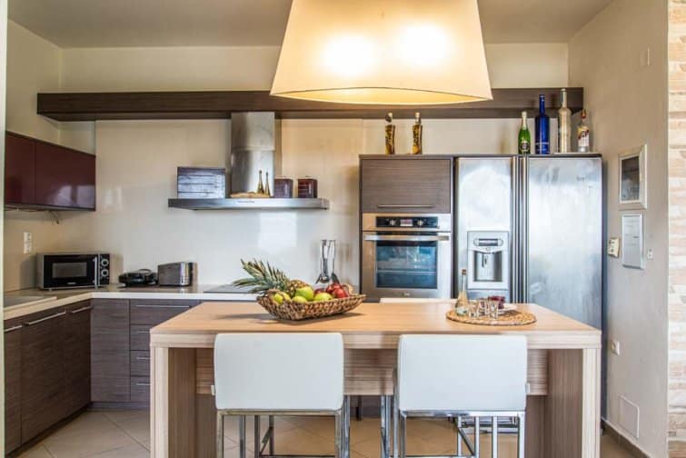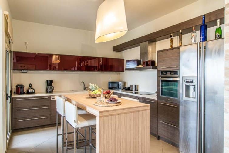 And the inside of this villa is just as impressive as the outside. On the ground floor, there is a modern kitchen equipped with all of the home-from-home comforts you need to enjoy your trip. This villa also provides stunning views of the outdoor space and landscape from the inside too!