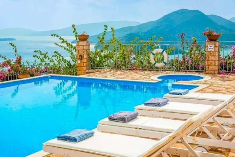 Villa Irida is located on the east coast of the island of Lefkada in Greece, just a short walk from Nidri Beach, a popular seaside destination. Boasting a natural harbour location, the town of Nydri offers bars and tavernas right on the water’s edge. For boat trips around the Ionian islands and small-town charm, this property is the perfect base.