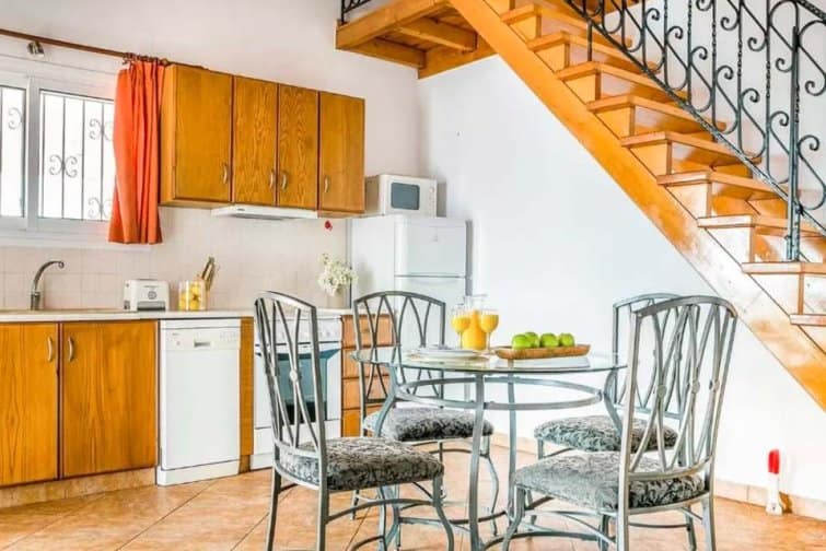 This villa welcomes you with an open plan living room, dining area, and fully equipped kitchen. Here you will find everything you need from a flat screen TV and Wi-Fi through to a washing machine and coffee machine for maximum convenience and comfort. To keep you cool, this property also provides air conditioning all year round.