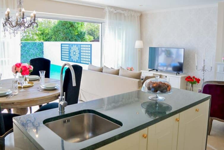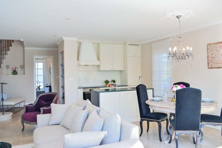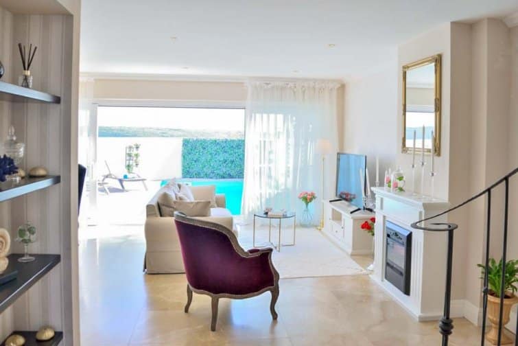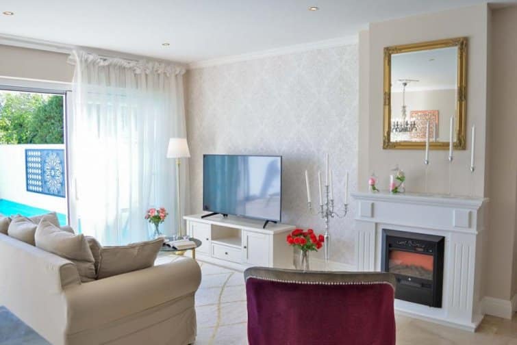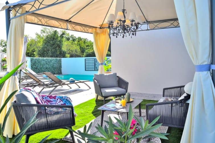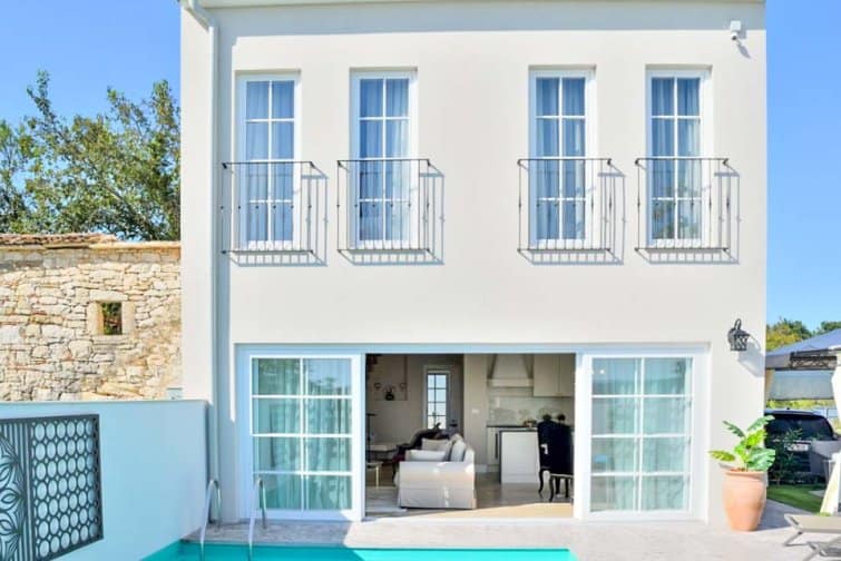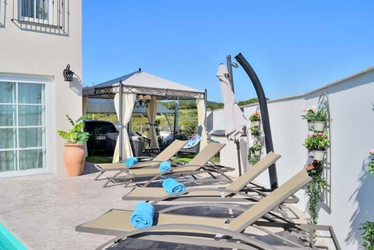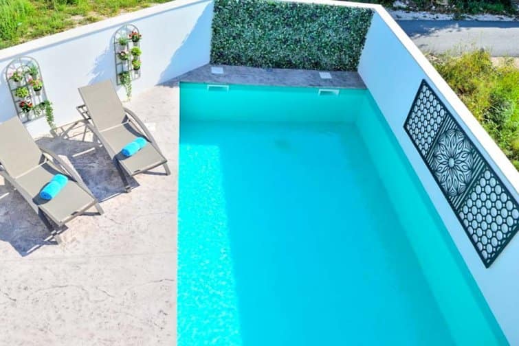 Guests will revel in the expansive grounds, spanning 460 square meters, complete with a sprawling private pool, an inviting outdoor barbecue, and a dedicated lounging area. The villa’s generous 120 square meters of interior space is thoughtfully distributed over two levels. Upstairs, two sizable ensuite bedrooms, each graced with a charming French balcony, offer sumptuous lodgings for up to four guests.