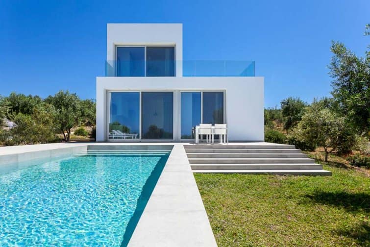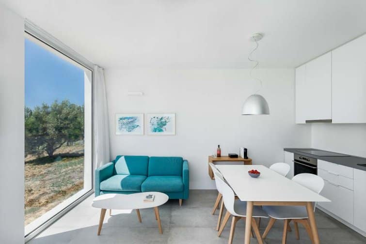 Villa Kalypso III is a stunning white-washed residence nestled amidst the Methoni Hills’ olive groves. This minimalist, modern-designed villa, along with its counterparts Kalypso I and Kalypso II, has been crafted to ensure both privacy and breathtaking sea views overlooking the charming village of Methoni and the magical sunset over Methoni’s Castle.