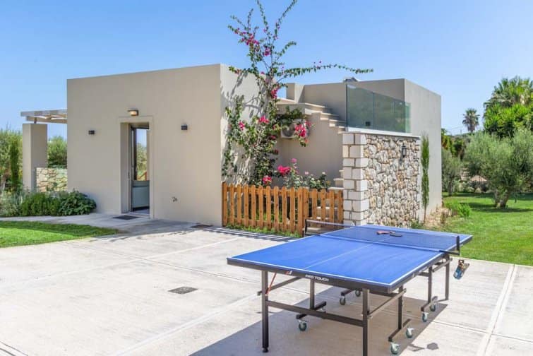 For those seeking a bit of friendly competition, a dedicated table tennis area awaits. Whether engaging in spirited matches or simply enjoying the game’s rhythmic cadence, this space adds an element of active enjoyment to the villa’s outdoor offerings. Surrounded by lush greenery and bathed in the gentle breezes of Crete, the outdoor spaces become an extension of the villa’s charm, offering moments of serenity and delight.