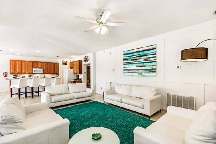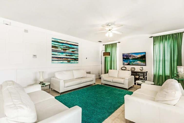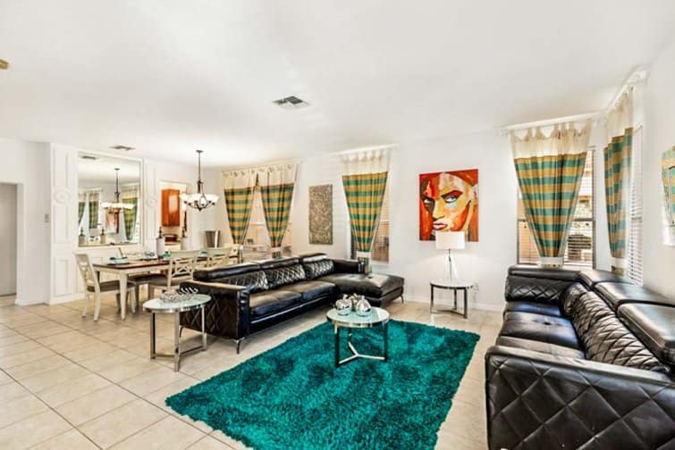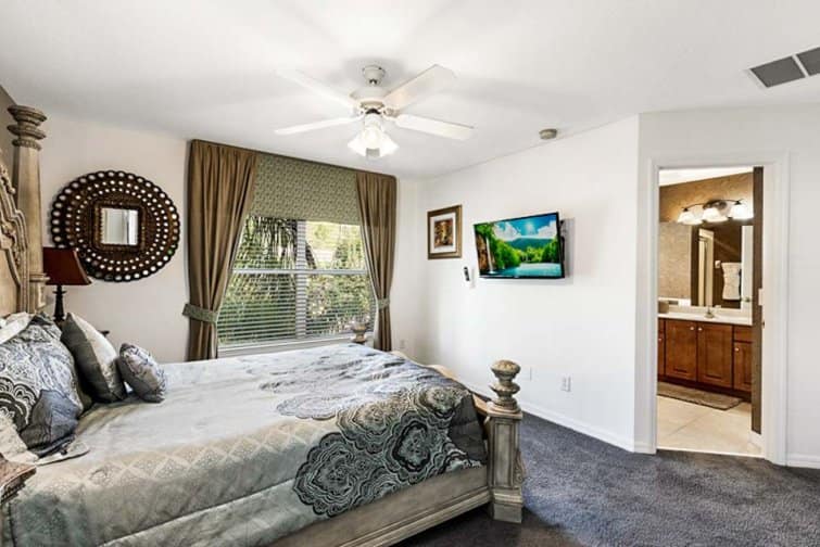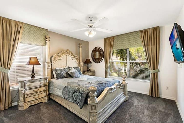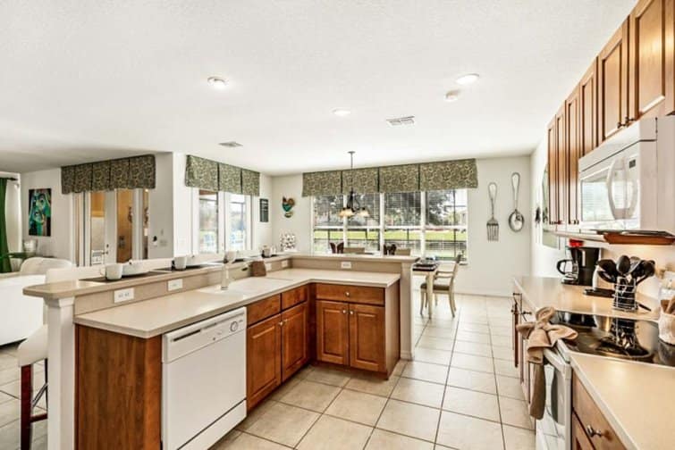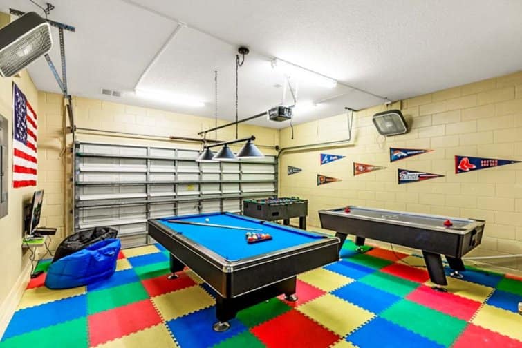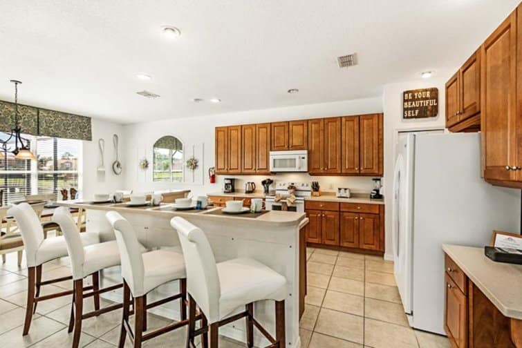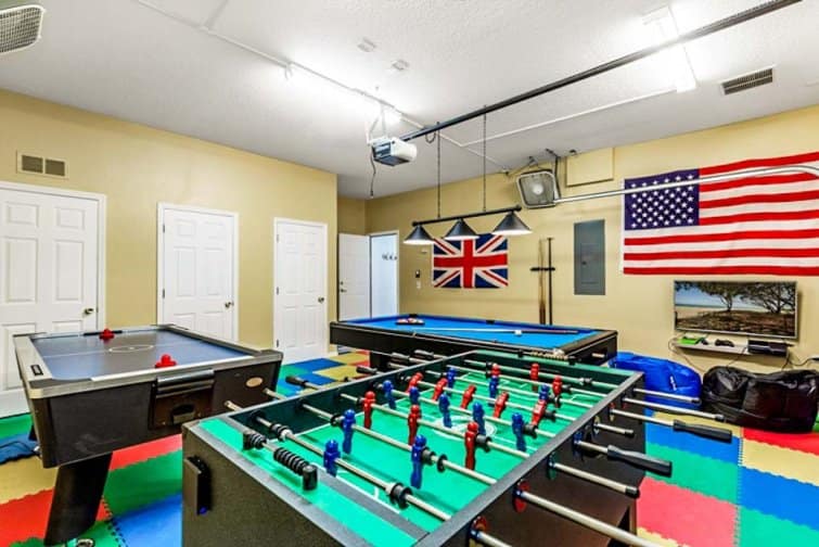 Step into a world of serenity at Lakeside Landing, wrapped in far-reaching lake views. This 6 bed home is located in the Bella Vida Resort. Embrace the serene setting in the tropical terrace, with a sparkling pool and relaxing spa that tempt you to cool off in its glistening waters. Dine alfresco-style, staring out at the peach-tinted sunsets in the outside kitchenette area, complete with a built-in barbecue. Stylishly furnished throughout, every room is chicly designed with contemporary furnishings and minimalist decor. The best part has to be the great game room, decked out with a pool table, air hockey, table football, a flat-screen TV, and an Xbox console. Kick off your shoes in the serene living room with plush leather sofas, or unwind in the snug family room with a 60-inch LED Smart TV. Built as a large open-plan concept, the kitchen is decked out with modern appliances and a breakfast bar, while the sleek dining table is framed by views over the glistening pool deck. Set in the Kissimmee area, the thrills and spills of Walt Disney World and Universal Studios are just minutes away. A slice of real Florida, the downtown has its feet planted in history with classic American diners and traditional-style cafes. But you won’t have to go far for some family fun, set within a gated community with everything from restaurants and bars to pools and club houses.