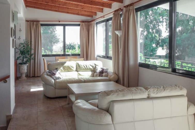 Villa Lindos Seashell’s outdoor space will take your breath away. Set amongst a lush green garden, a large outdoor swimming pool invites refreshing dips under the azure sky, with views that stretch across both majestic mountains and the glimmering blue sea. Sink into a pool-side sun lounger and spend a quiet afternoon reading, take a moment to cook up a scrumptious feast on the outdoor BBQ and enjoy a spot of alfresco dining as the twinkling stars fill the inky evening skies.