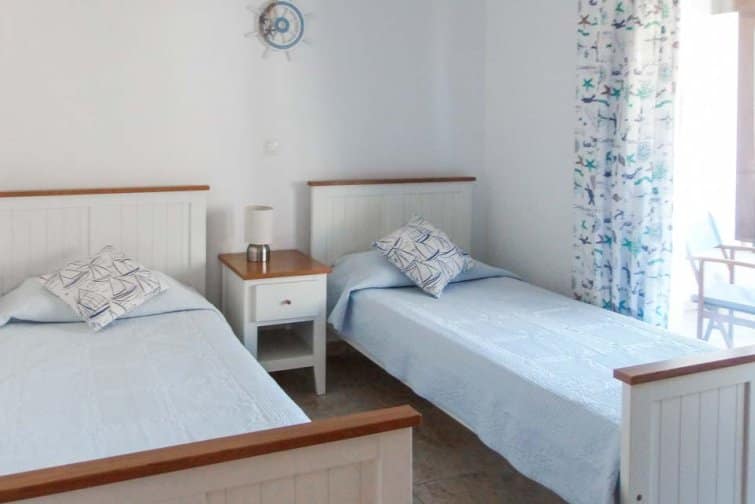 Each of the villa’s two bedrooms offers a beautifully decorated and relaxing space to unwind after a busy day exploring, or lounging by the pool, with one room featuring a double bed while the other is equipped with two single beds. The living area also features a sofa bed for additional convenience.