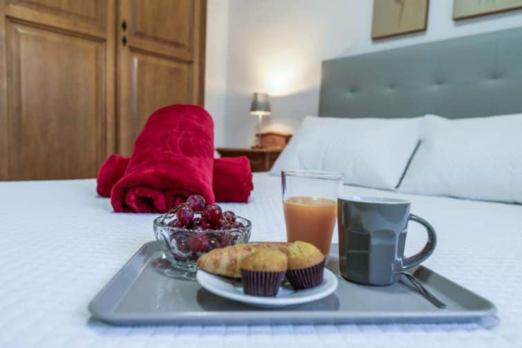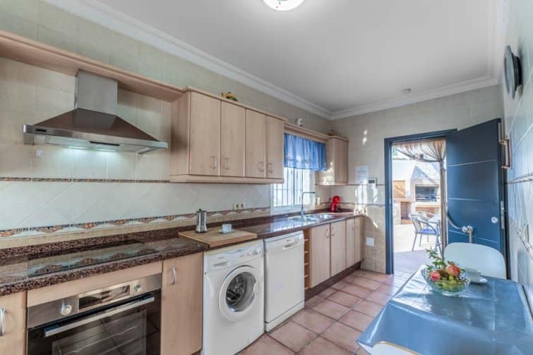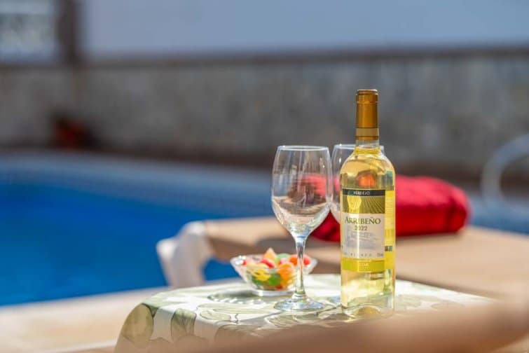 Inside, the villa is homely and comfortable, with air conditioning throughout and flooded with natural sunlight. The kitchen is fully equipped with everything you’d expect from a self-catering property, such as a dishwasher, washing machine, and an array of useful utensils. There’s three fresh bedrooms that allow for a good night’s sleep on your summer getaway, complete with crisp fresh linen and cool air conditioning.