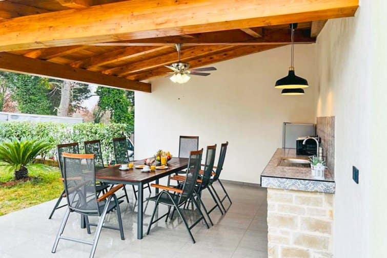 Step into Villa Magnolia Breeze and immerse yourself in a fusion of contemporary comfort and timeless Istrian charm. This villa seamlessly blends modern amenities with traditional architecture, boasting vibrant wooden beams and white-washed walls that exude rustic elegance. The large open-plan living concept allows for social moments as you sink into plush sofas and unwind with loved ones, savouring local wine within this comfortable homestay.