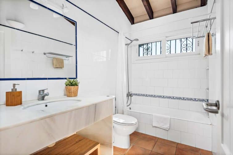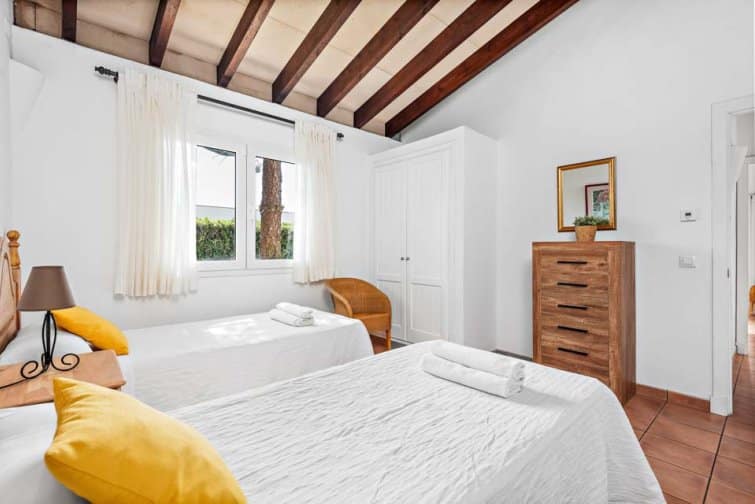 Back inside the villa you will find three bedrooms, one of which is a double with en-suit facilities and patio doors onto the terrace, whilst the other two bedrooms have twin beds and share the family bathroom. A cosy kitchen sits off the living room with everything you need for a stress-free holiday including dishwasher and washing machine.